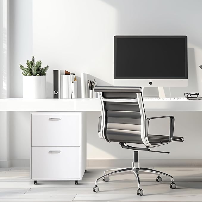 QDSSDECO 2 Drawer Mobile File Cabinet, Rolling Vertical Filing Cabinet fits A4, Legal Paper and Letter Paper for Home Office, White