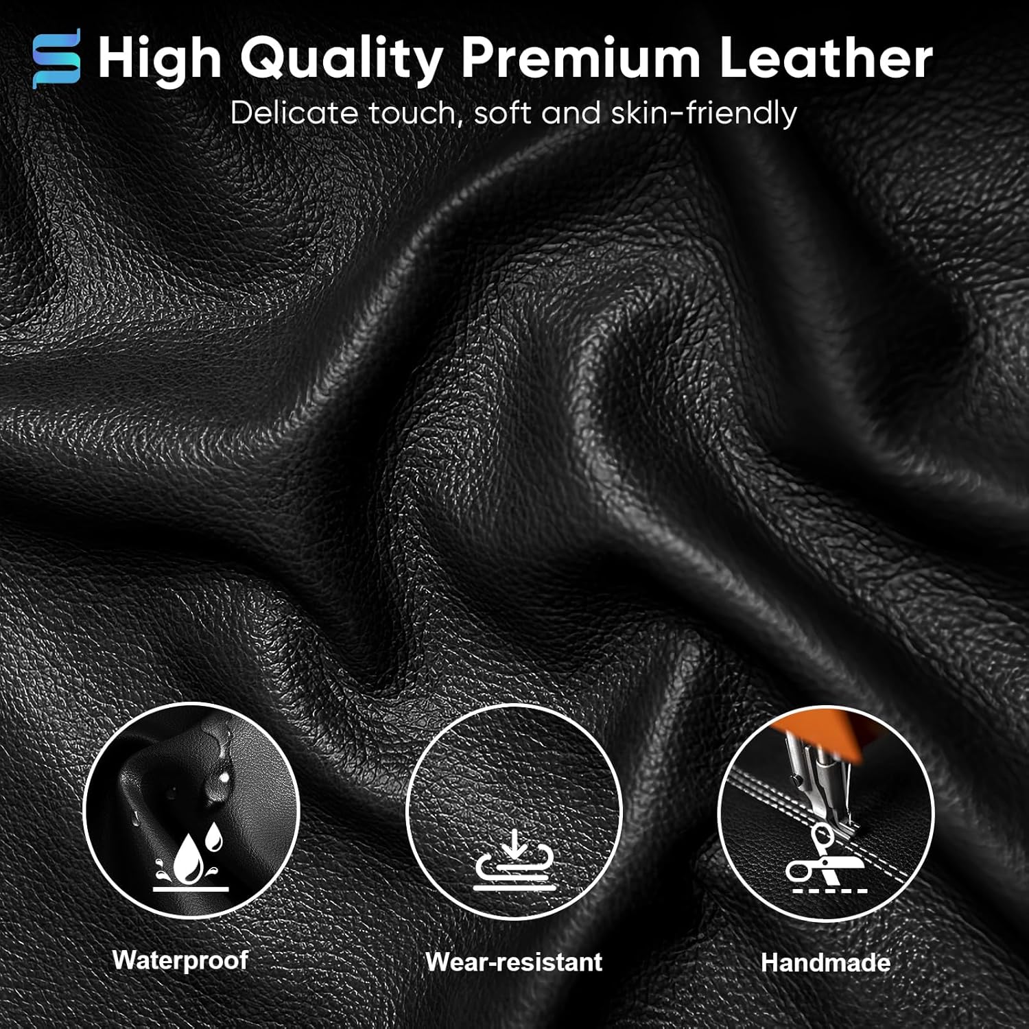 - High-Quality PU LeatherοΌThe ergonomic chair is made with a whole piece of PU leather, which is waterproof, skin-friendly, wear-resistant, non-fading and easy to clean. The leather is hand-cut and sewn, with added embroidered details for a unique and stylish touch
