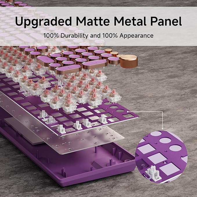 - 【Metal Panel and Electroplated Punk Keycaps】:The typewriter gaming keyboard panel is made of top-grade aluminium alloy, with a metallic matte texture, sturdy and robust enough to protect it from scratch. The floating keycaps are carefully crafted using metal plating technology, with a unique monochromatic light that instantly makes your keyboard look stunning, and enhances the feeling of the wired backlit keyboard.