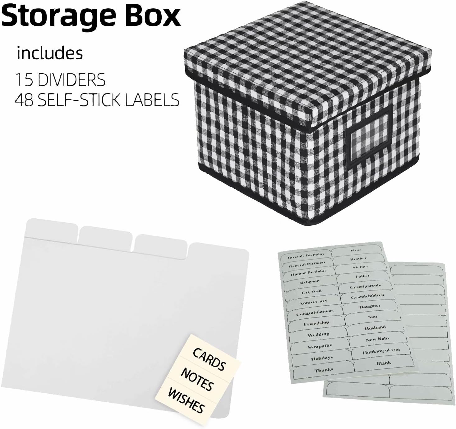 - Large Capacity Storage: The size of our greeting card box is 9.6"x9.1"x7.5βand can accommodate 140+ cards. It includes 15 dividers and 48 self-stick labels , you can organize your cards by calendar month or occasion