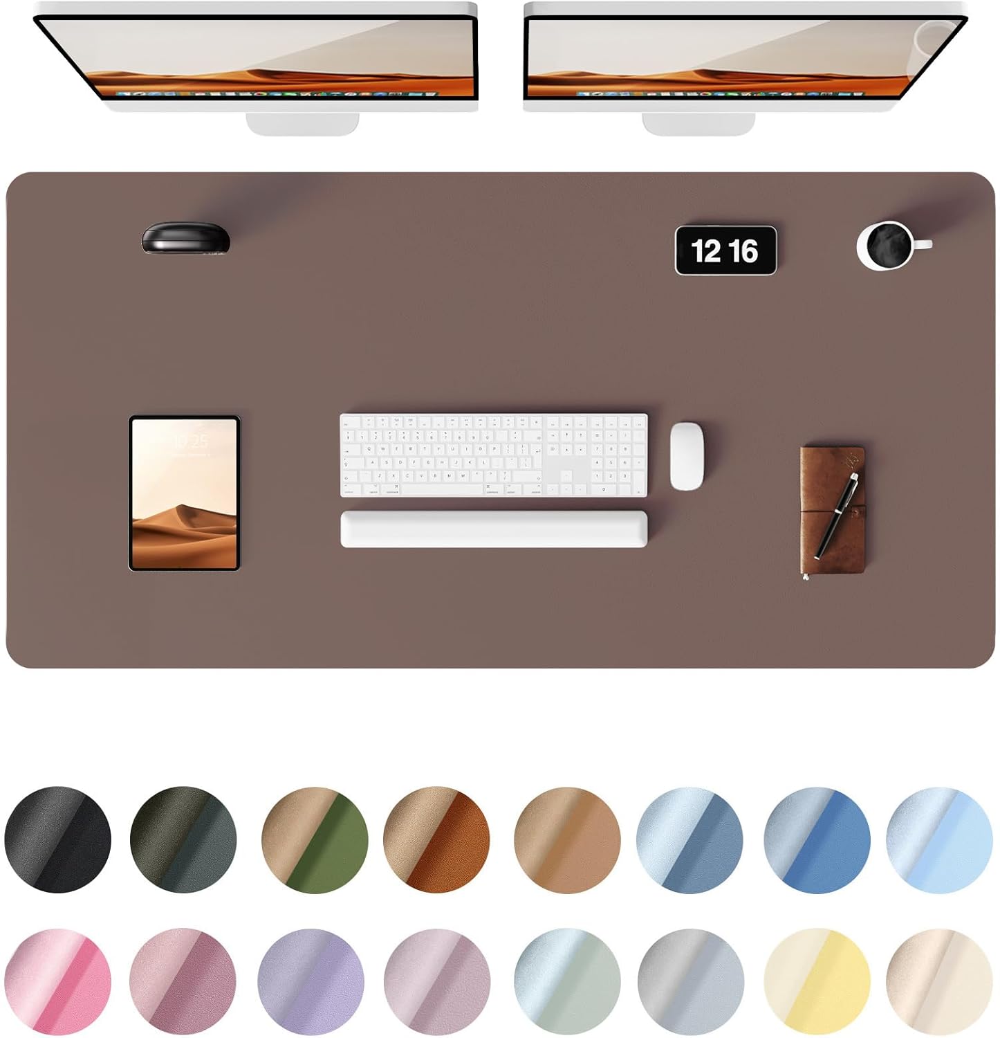 - DESK PROTECTOR: Durable PU Leather material adapted, which can protect your desk from scratches, stains, spills, heat and scuffs. Multi-color provided, change your mode by change the working atmosphere. Surface can be used as a large mouse pad, comfortable resting surface for your hands while writing, typing, and using the mouse. A must have office or study supplies.