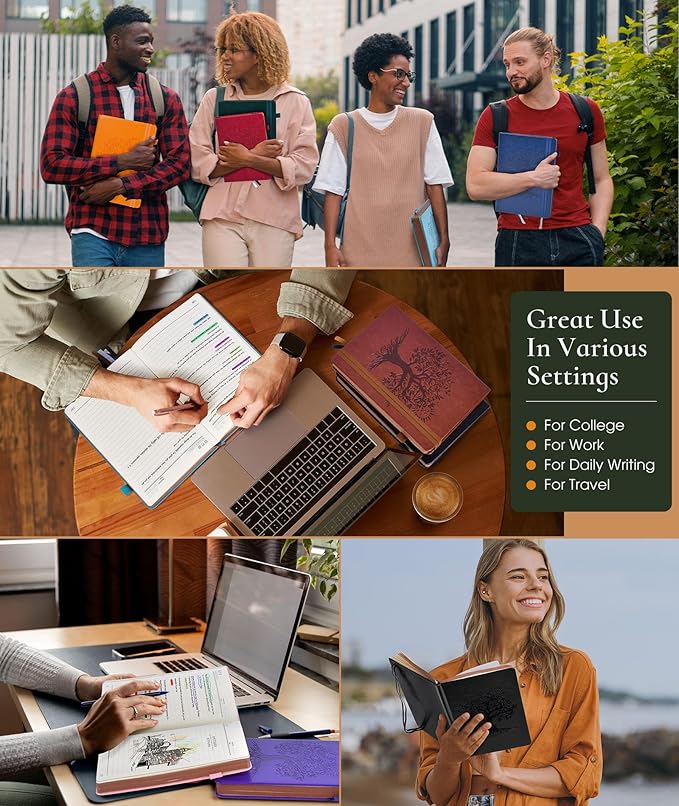 - 【180° LAY FLAT DESIGN】 The 180° lay flat feature ensures comfortable writing, whether you’re jotting down ideas or sketching.This notebook for work, office, or college is designed for ease of use, allowing you to focus on your tasks without distractions.The thick paper prevents ink bleed-through, enhancing your writing experience.The smooth lay-flat design and high-quality paper make this notebook suitable for both left-handed and right-handed users.