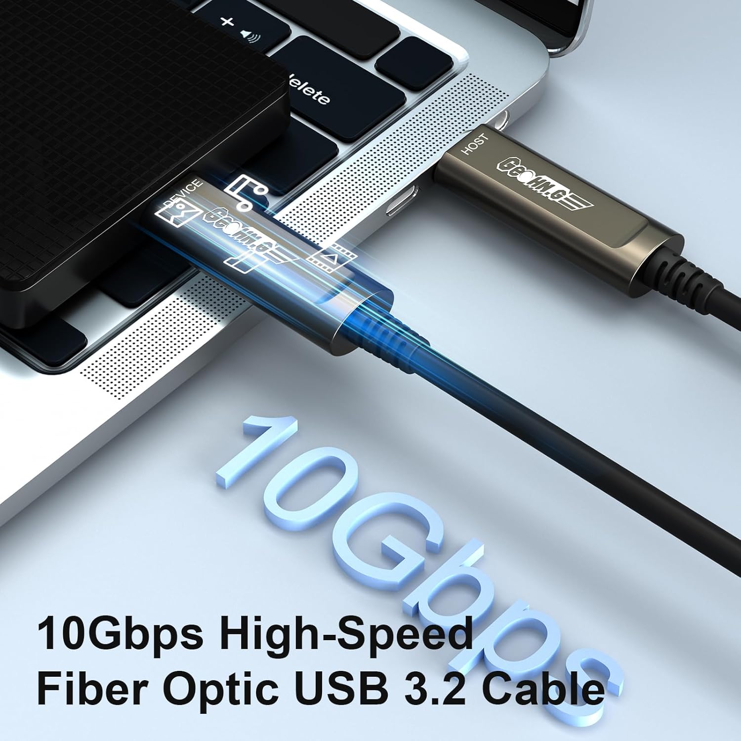 GeoHN.G USB C to C Fiber Optic Cable 10M/33FT, USB 3.2 10Gbps Long Distance Data Transfer USB C Extension Cable for VR, Camera, Mini PC, Laptop, Webcam, Printer and More