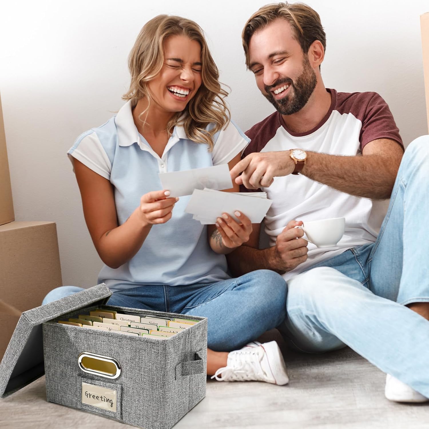Vienrose Greeting Card Organizer 1 Pack, Storage Box with 20 Adjustable Dividers, Foldable Organizer Box Holds over 150 Cards, Storage Stickers Recipes Photos Envelopes Bills Vinyl Records, Grey