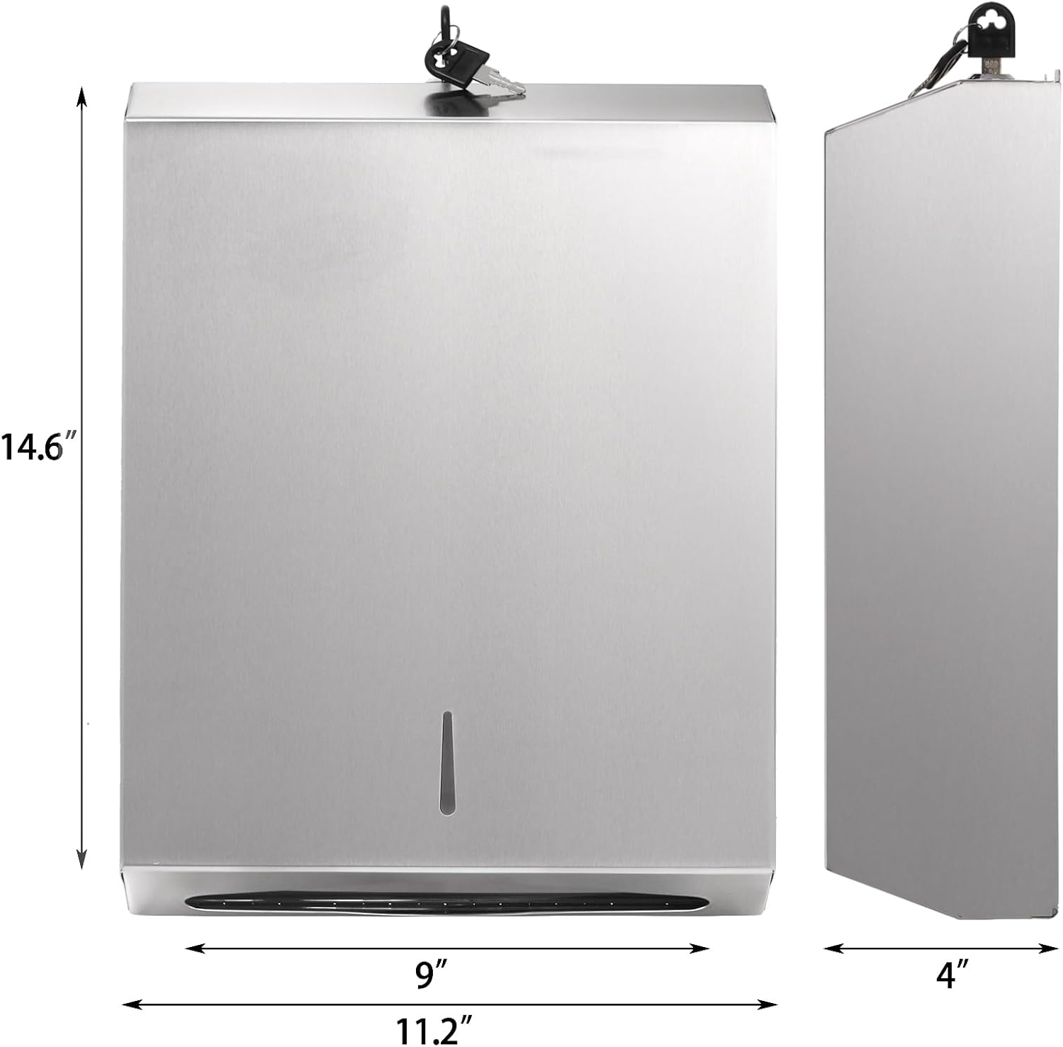 - Large Capacity: Holds up to about 400 c-fold, tri-fold, z-fold, multi-fold, and m-fold paper towels. Measuring 11.2" long x 4" wide x 14.6" high, this paper towel dispenser is compact enough to fit seamlessly in any space while still providing ample storage for paper towels