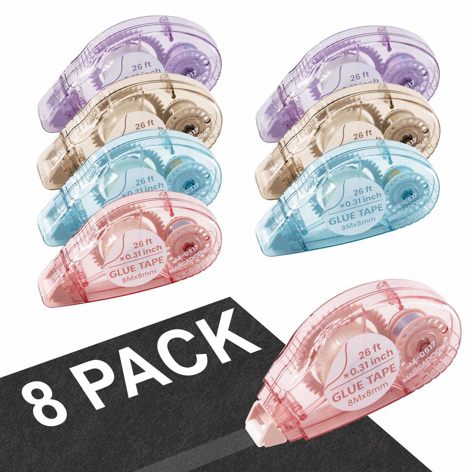 Double-Sided Tape Runner, Pack of 8, 0.31 Inches x 26 Ft Adhesive Tape Runners, Craft Supplies for Scrapbooking, Gift Wrapping, and Paper Art.