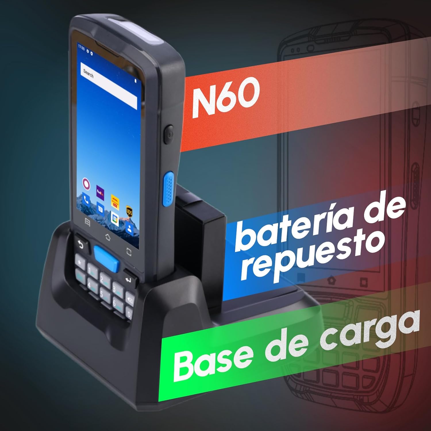 - 「Operates Smoothly」Running on the Android 12 operating system, equipped with 4GB RAM + 64GB ROM, powered by an Octa-Core 2.0G processor, and showcasing a 4.0-inch IPS touch screen paired with a numeric pad for effortless navigation. The N60 Android Barcode Scanner configuration ensures a smooth and user-friendly experience. Supports installation of Android-based ERP, WMS apps, or web-based mobile applications.