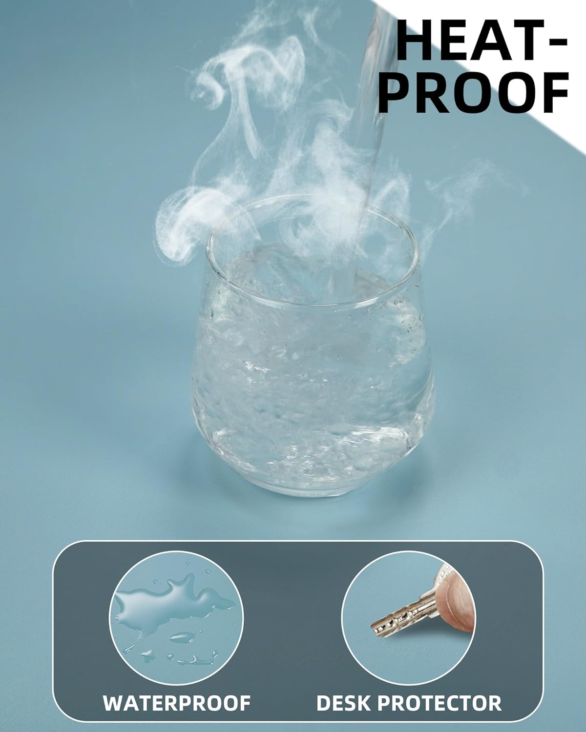 Non-Slip Desk Pad,Mouse Pad,Waterproof PVC Leather Desk Table Protector,Non-Slip PU Leather Desk Blotter, Easy Clean Laptop Desk Writing Mat for Office Work/Home/Decor(Light Blue, 24" x 13.7")
