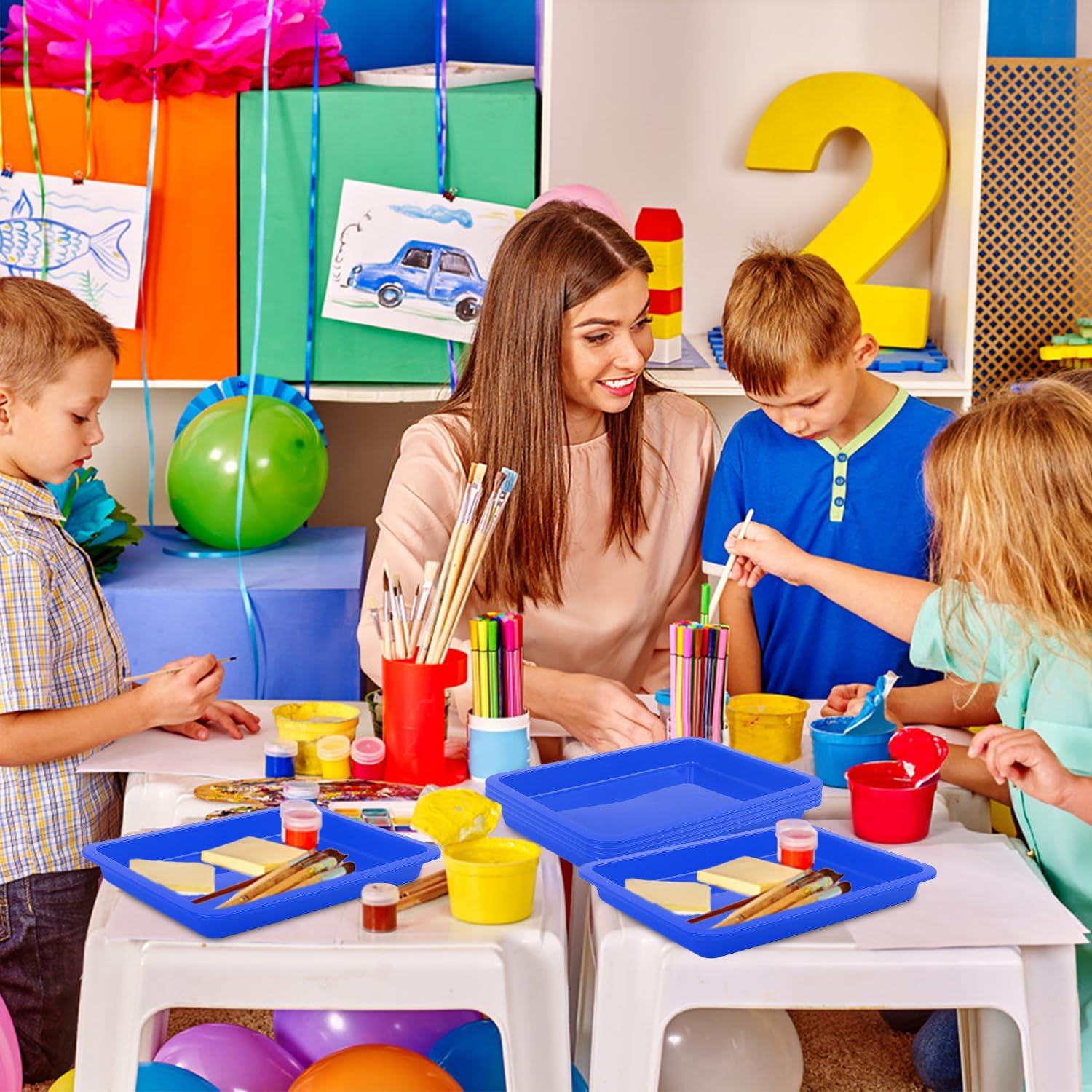 - ✔【Proper Size forProject】- Each tray measures 9.45 x 7.1 x 0.98 inches, ideal for a variety of activities. Fits perfectly in small hands and on desks. Provide the perfect workspace for your child's painting, crafting, and school projects with these art trays.