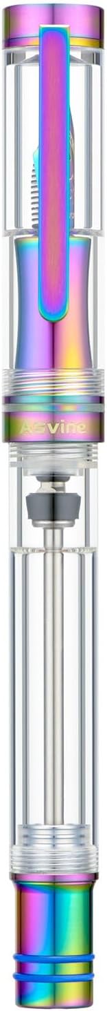 Asvine V200 Titanium Fountain Pen Vacuum Filling, Rainbow Iridium Fine Point Transparent Acrylic Smooth Writing Pen Case Set
