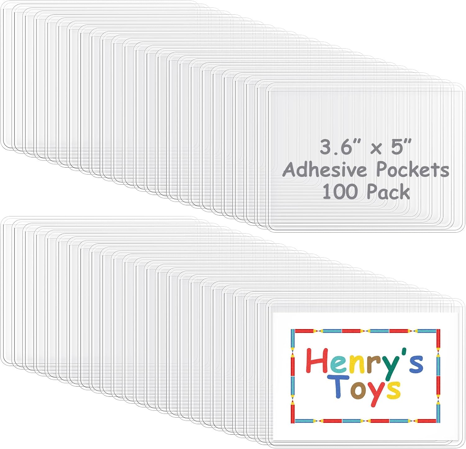 Jeyiour 100 Pcs Label Holders Adhesive Nameplate Pockets Storage Bin Labels Index Card Holder Shelf Plastic Peel Stick for Classroom Supermarket Bookshelf Library Student Box Drawer (3.6 x 5 Inch)