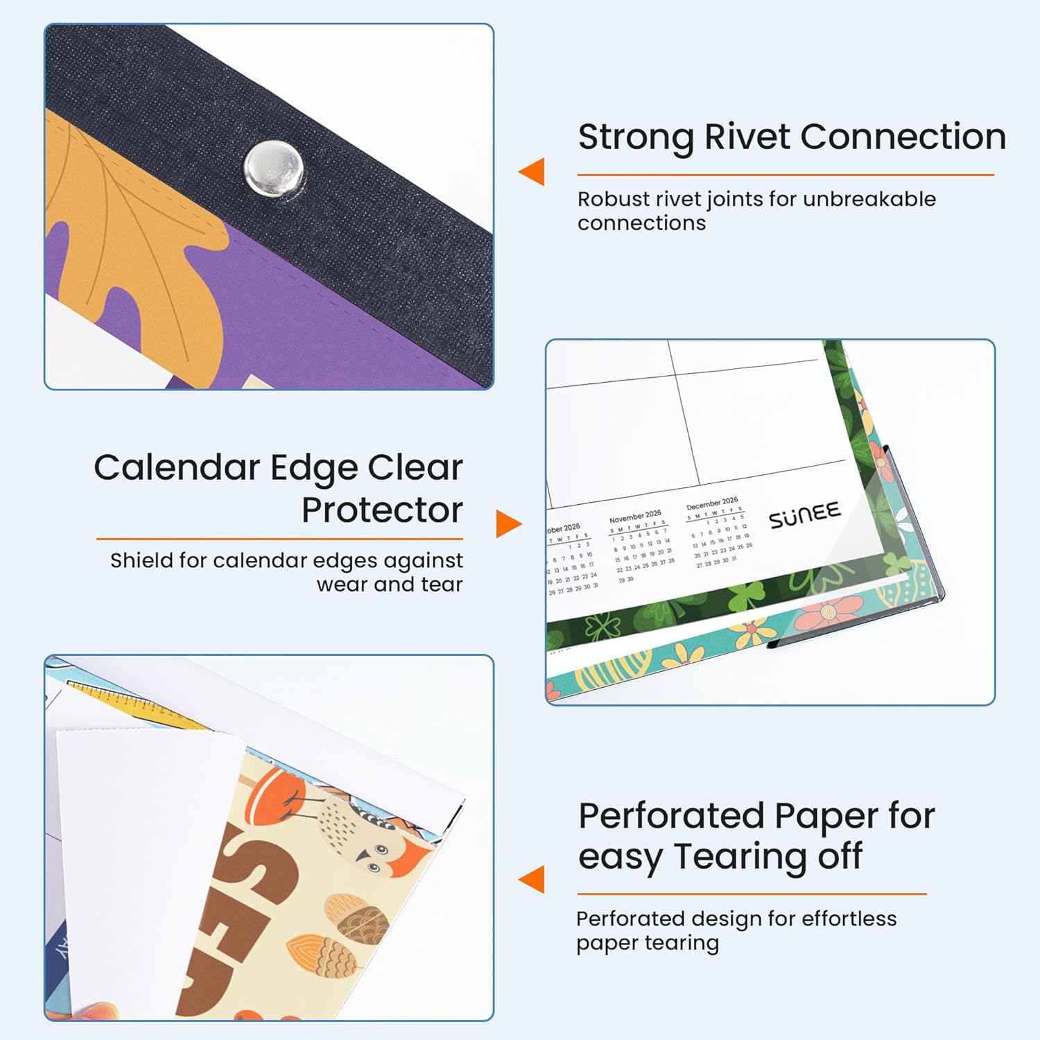 - Non-bleeding Paper: The paper of monthly calendar pad has a unique design and looks motivated. Writing with a pen on the paper is smooth without ink jamming or bleeding through. All the papers are stuck together by the clear glue at the top and can be easily torn clean