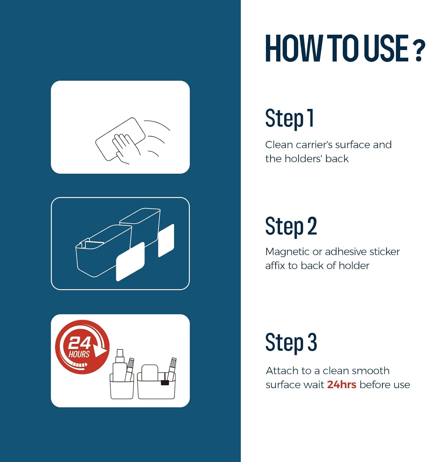 - Light Capacity: Includes a small marker holder (4.8 x 2.24 x 2.36 in) and a mini marker holder (2.95 x 1.85 x 2.24 in). The small holder can hold 1 whiteboard eraser, 1 whiteboard cleaner, and several dry-erase markers or other accessories. The mini holder can fit 1 eraser or 1 whiteboard cleaner and several markers. Offers flexible storage options based on your preference