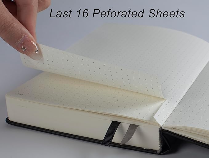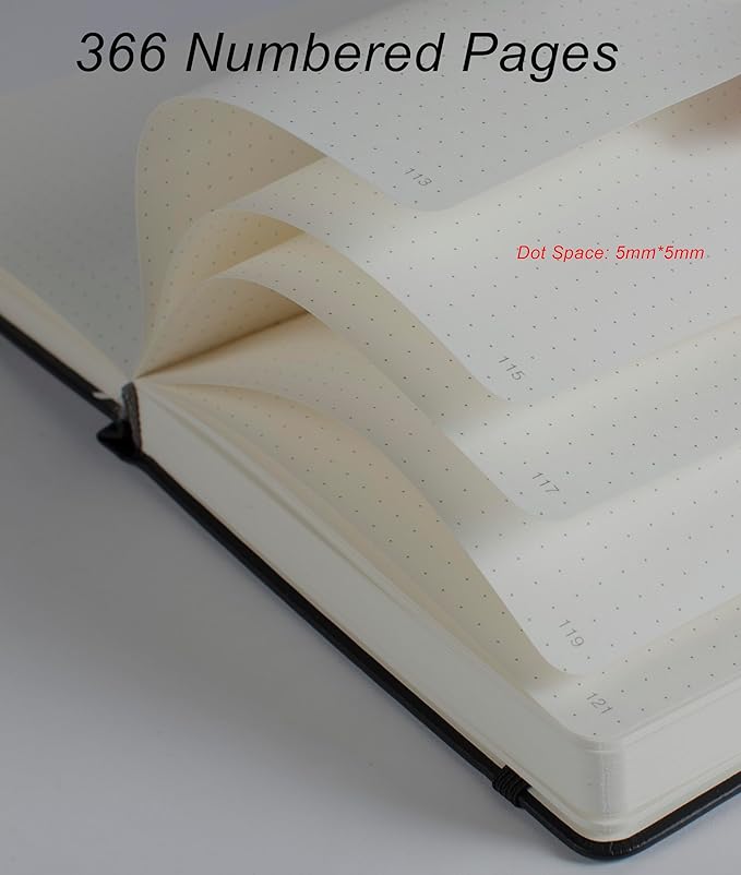 - Comfortable Writing: Light Ivory paper to protect your eyes. 100gsm weight paper is thicker than normal, suitable for fountain pens, ballpoint pens, highlighters to write on both sides of page without bleeding through, smearing or ghosting. Dot spacing is 5x5mm and 180Β°lay flat to give you comfortable writing experience.