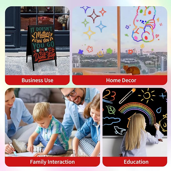 - Safe & Non-Toxic: Whether you're organizing your chalkboard calendar, decorating windows, or making personalized gifts, Our chalk markers for chalkboard are safe for kids and adults. The washable markers are non-toxic, offering peace of mind for families and professionals alike. Create vibrant designs knowing that the colors are safe and easy to wash off from hands, clothes, and surfaces.