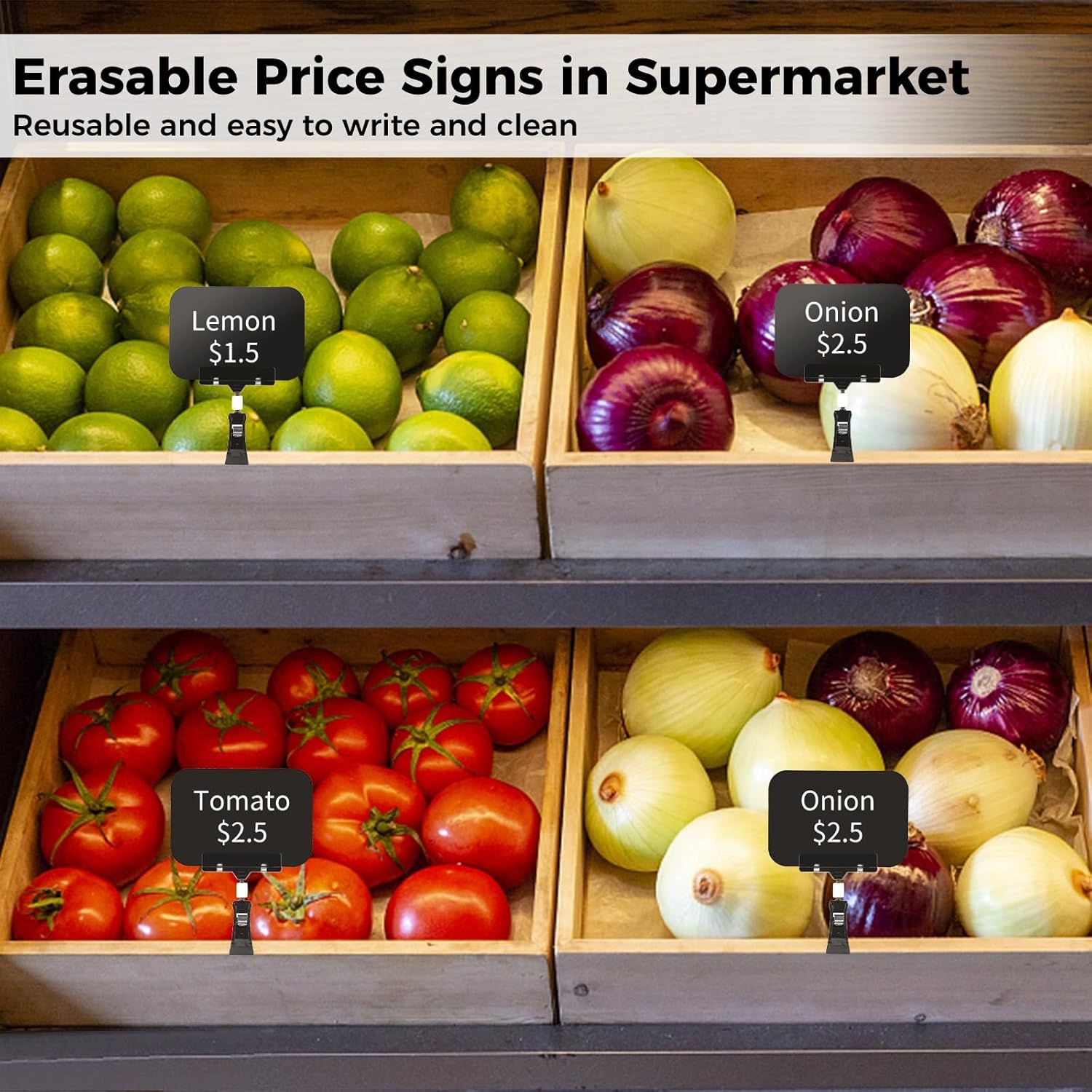 - 【Erasable & Reusable Price Tag】Crafted from quality plastic, these mini chalkboards are sturdy and resistant to breakage or deformation. With smooth surfaces on both sides, they offer an excellent writing experience and are easy to erase with a sponge and waterproof for outdoor use. Enjoy their durability and reusable nature for long-lasting usage.
