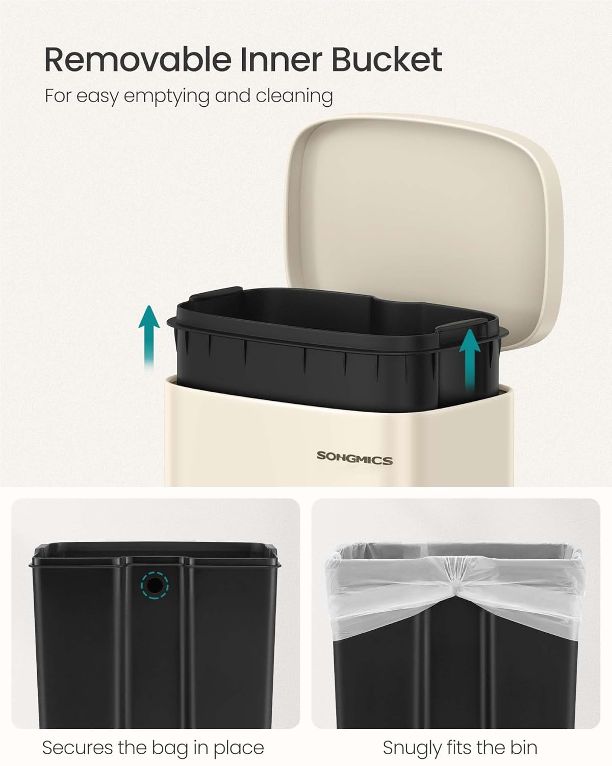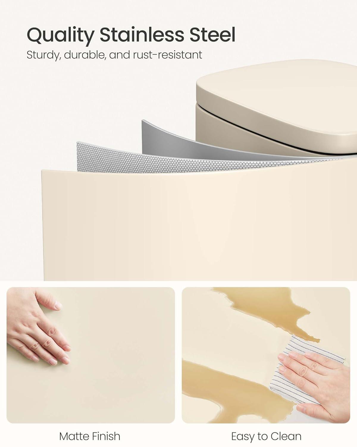 SONGMICS Trash Can with Lid, 8 Gallon Garbage Can, Stainless Steel Small Waste Bin with Step Pedal and Inner Bucket, Soft Close, Kitchen, Sand Beige ULTB003A01