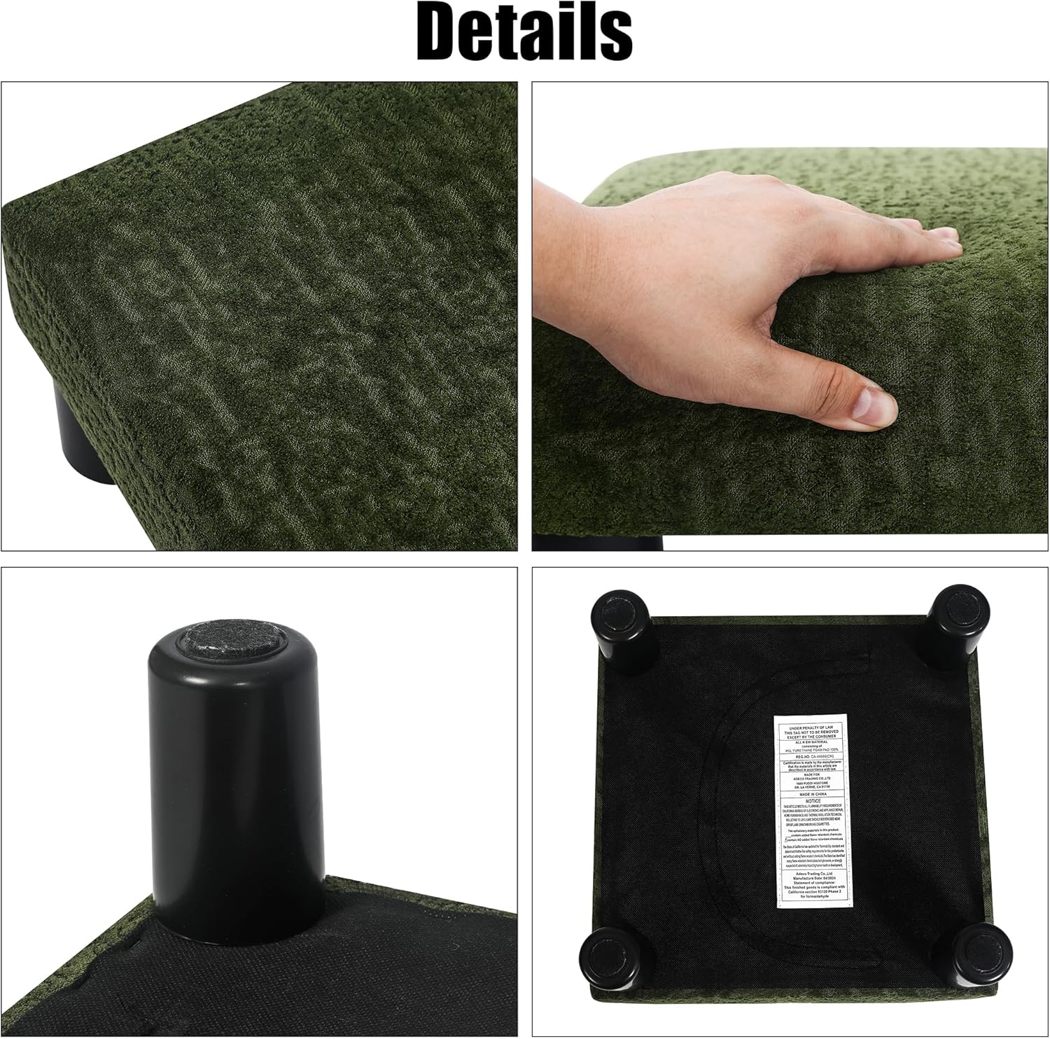 Joveco Small Foot Rest Stool Ottoman, 3D Velvet Square Upholstered Footstool for Chair, Under Desk, Office, Living Room, Deep Green