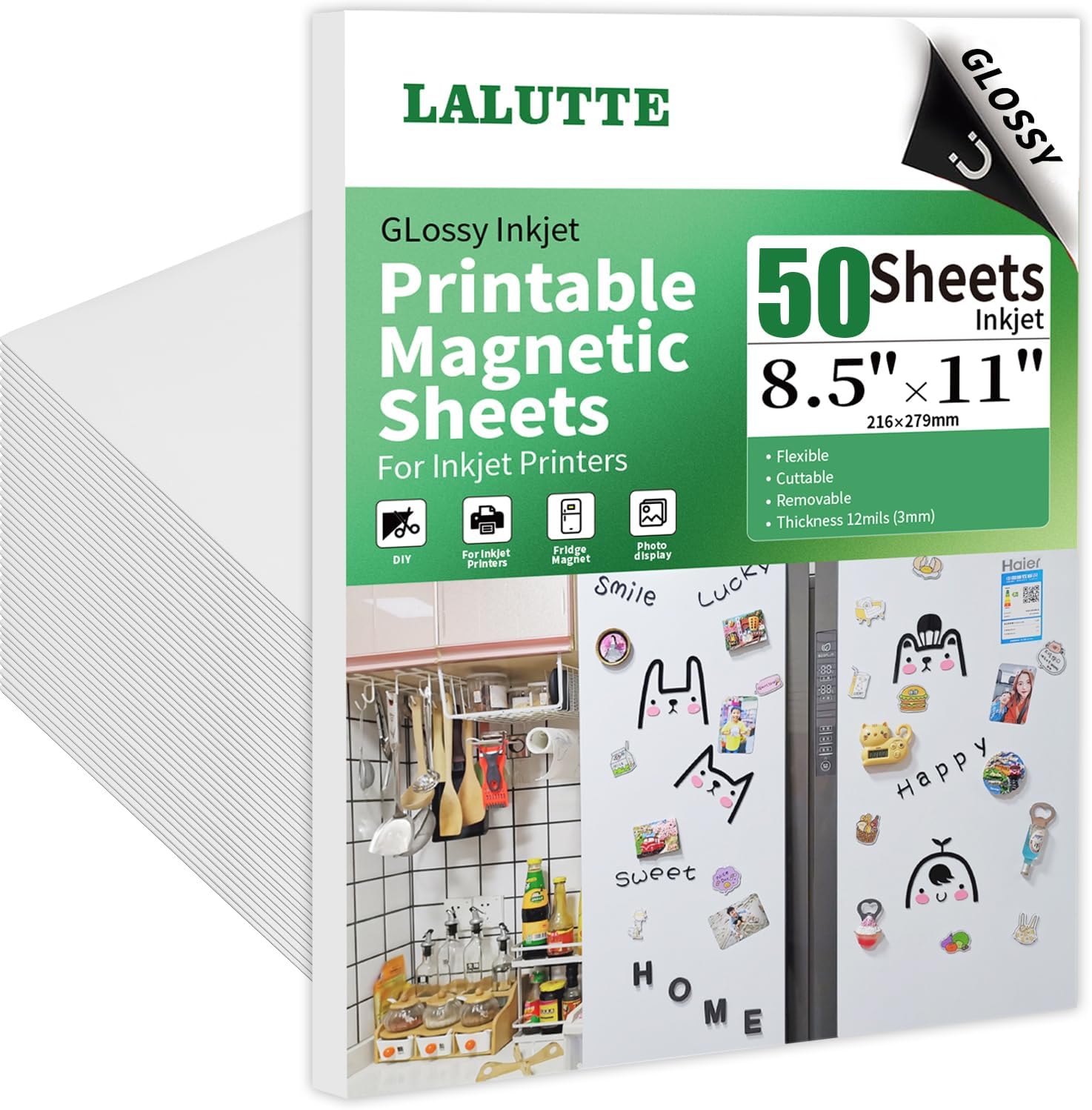 - [PREMIUM QUALITY]: Our 50pcs magnetic sheets measure 8.5 x 11 inches and are 12mil thick. The white glossy side is printable and is only compatible with inkjet printers. The back is flexible magnetic and non-adhesive, attaching easily to iron.