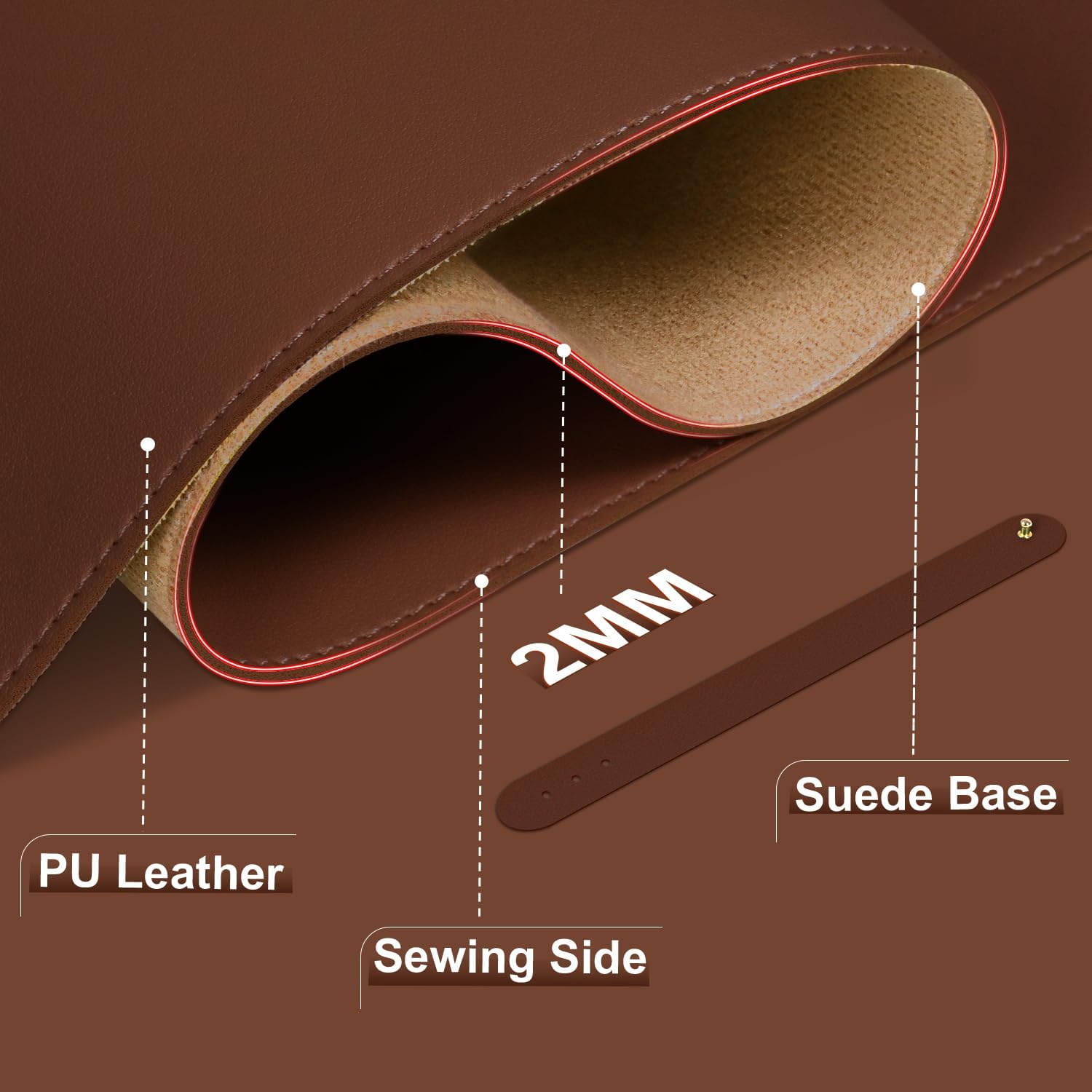 Leather Desk Pad Protector, 39.4'' X 17'' Large Mouse Pad, Office Desk Mat, Non-Slip PU Leather & Suede Base Desk Blotter, Laptop Desk Pad, Desktop Mat for Office Home, Seal Brown