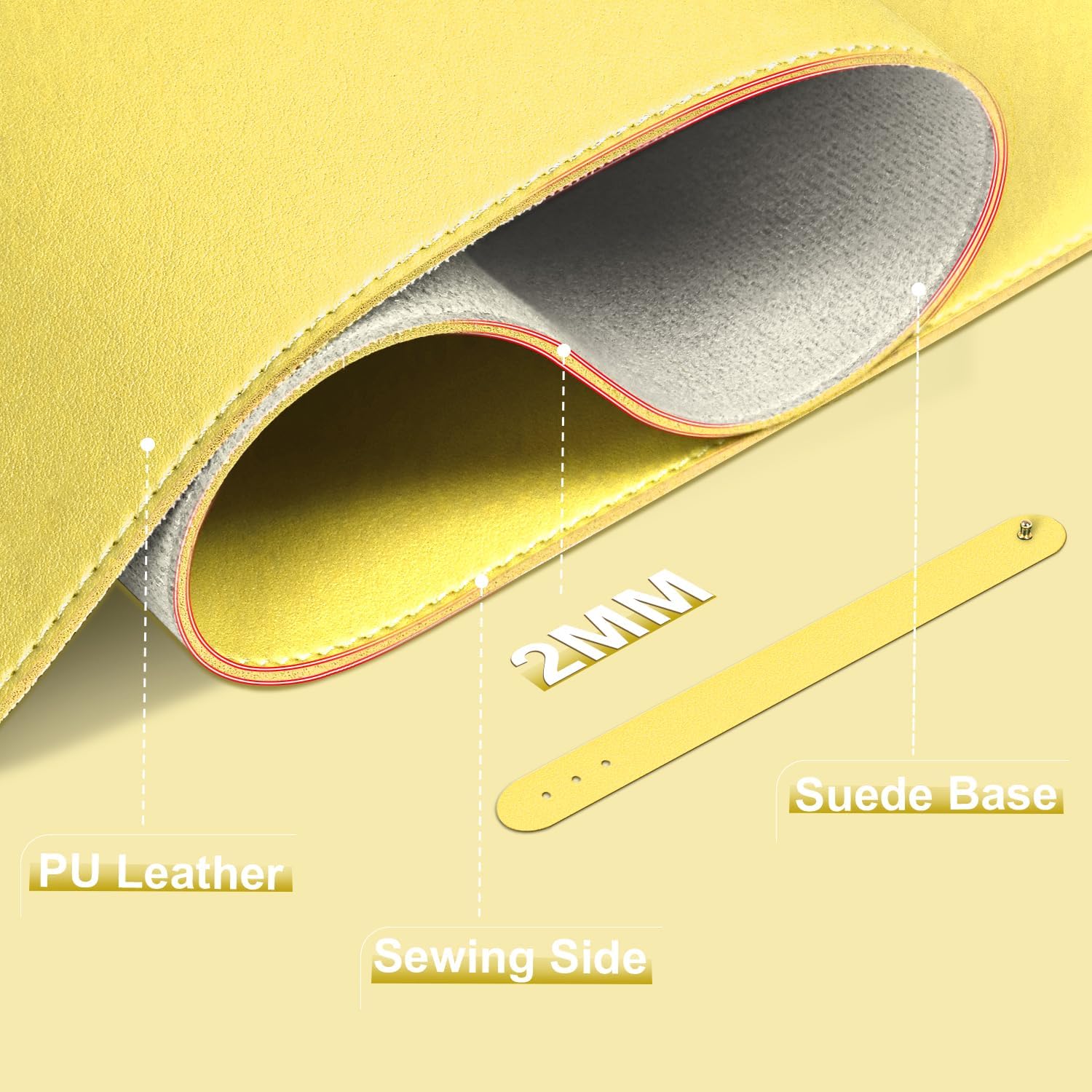 Leather Desk Pad Protector, 47.2'' x 23.6'', Suede Base Sewing Desk Blotter, Non-Slip Office Mat, Waterproof Writing Pad - Yellow