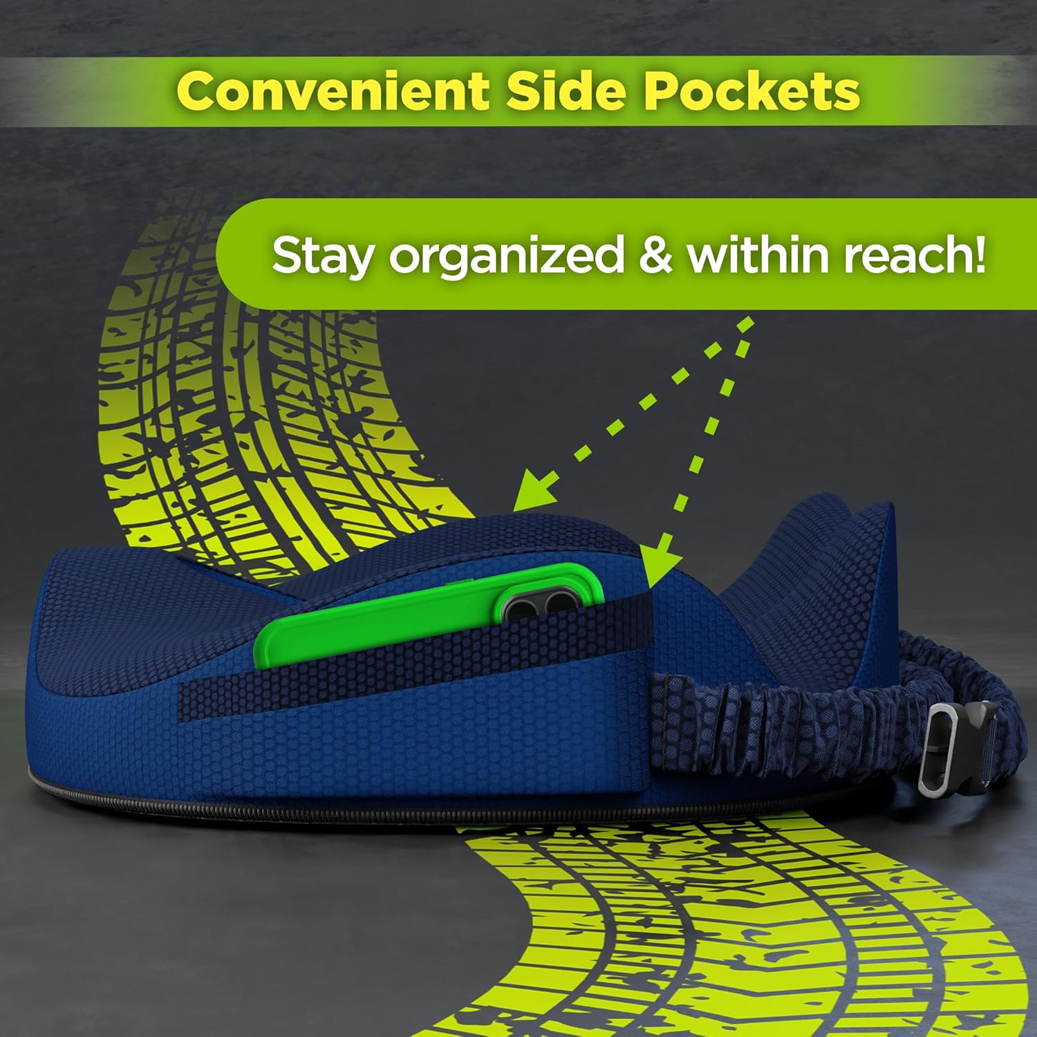 XL Truck Seat Cushion for Truck Driver Seat Cushion - Upgraded Back Support, CertiPUR-US® Certified - Thick Memory Foam, Pain Relief for Hours of Driving, Trucker Approved Big Rig - Navy