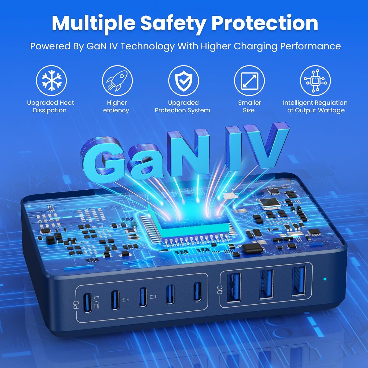 - γLatest GAN β £ Chip Technology Charger StationγThe USB C charger adapted GaN β £ generation chip technology, built-in multi-protection system and premium microchips. With higher energy efficiency, higher resistance to radiation and upgraded heat dissipation, Gallium Nitride (GaN) makes our chargers smaller and safer without sacrificing a drop of power. Trustworthy Charging Station with 3 Years Warranty!