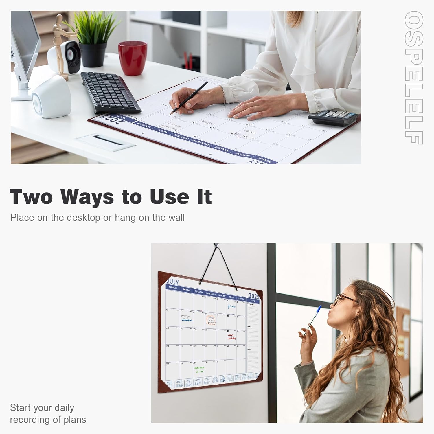 Ospelelf Desk Calendar 2025-2026 Large Wall Calendar with Plastic Cover 22"x17" Planner Pad Runs from January 2025 to June 2026 Brown