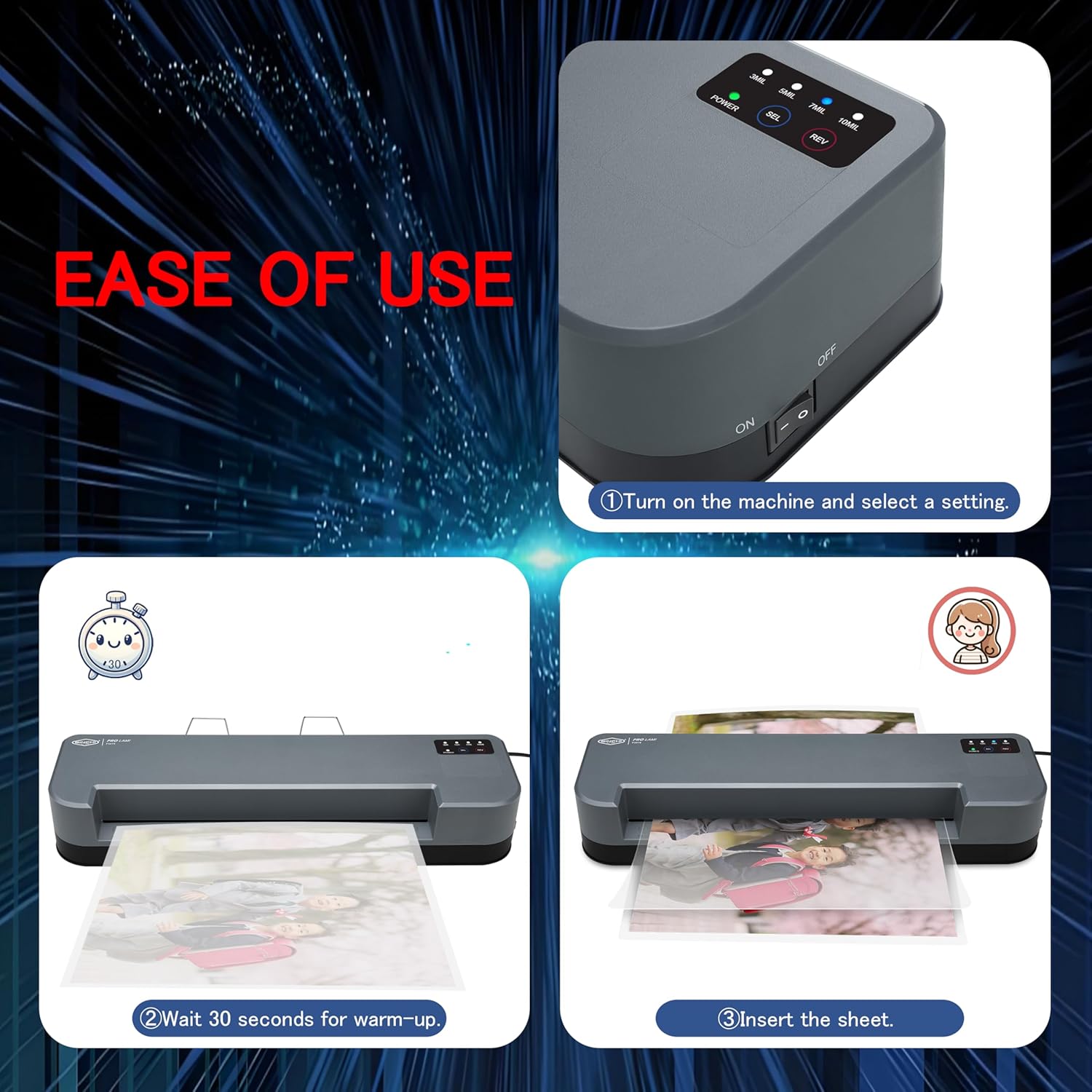 - 【Commercial-Grade Build】Designed for heavy-duty use, this machine operates louder than basic models due to its durable metal gearbox—a normal characteristic of professional-grade laminators.