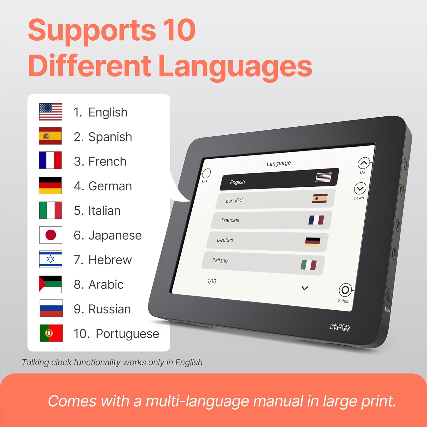 - Reliability and Peace of Mind: The American Lifetime talking clock has an internal backup solution that allows it to automatically reset itself to the right time and date in the event of a power failure. It will retain all the information, including the alarms and themes.
