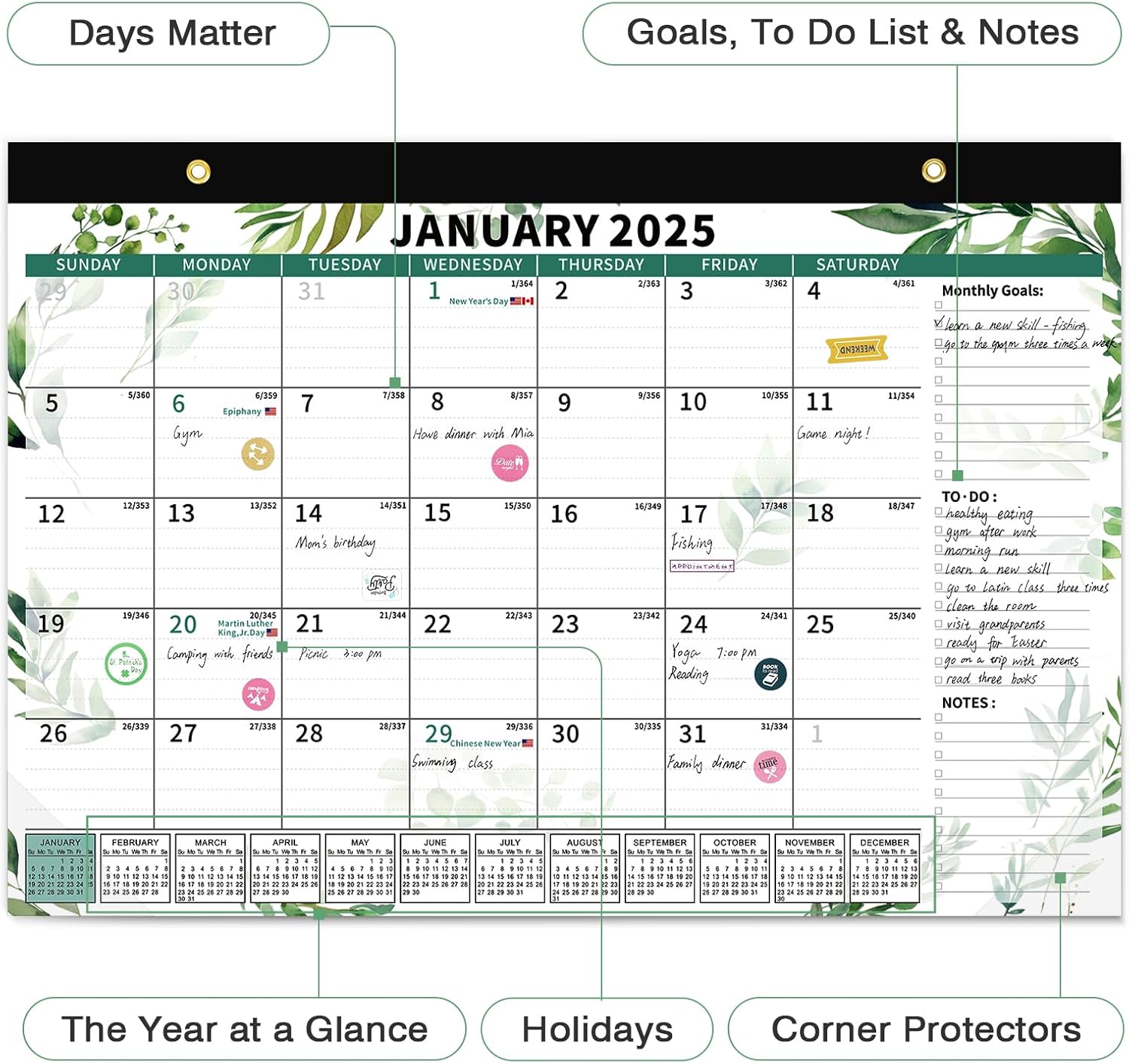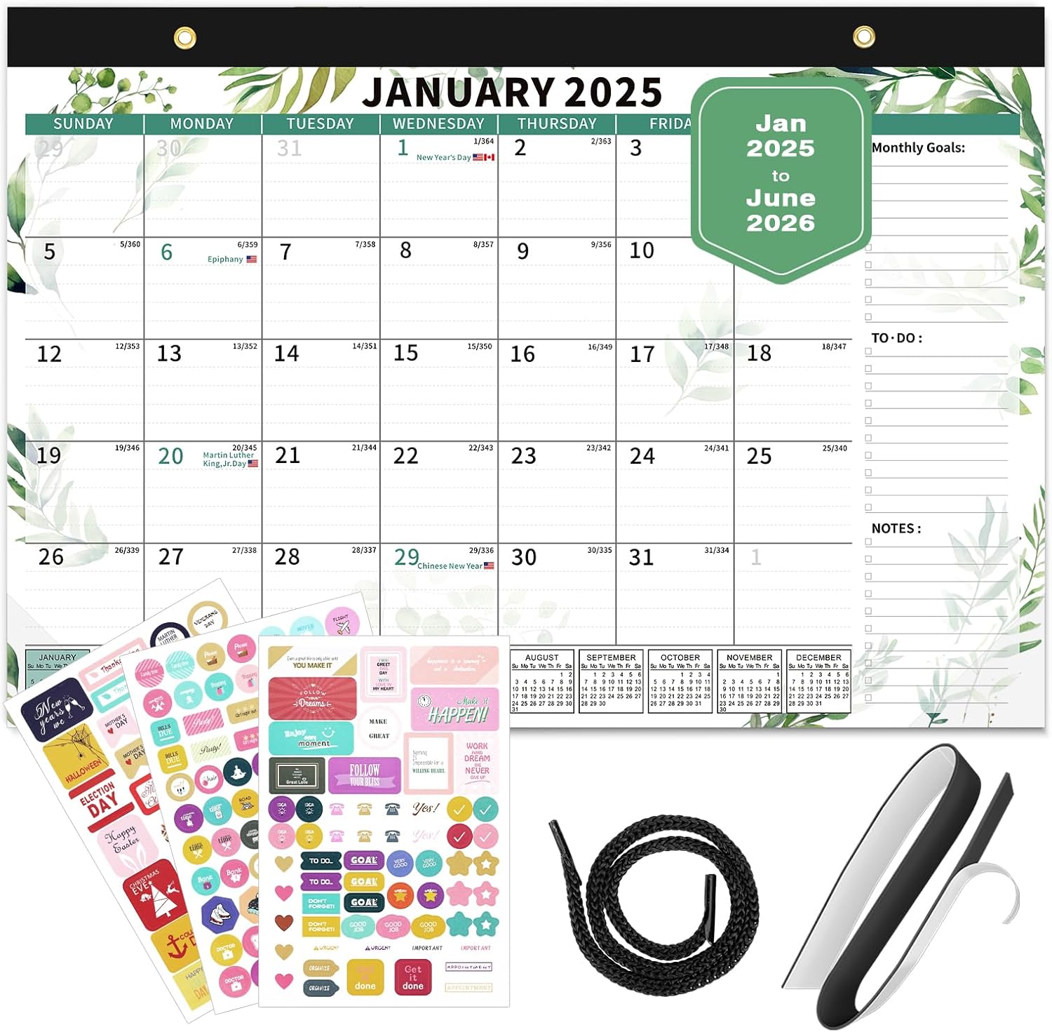 - Humanized Design: The calendar set includes a detachable string, a magnetic sticker and planning stickers. The wall calendar can be easily hung through the string and magnetic sticker provided. A variety of planning stickers can also add some interest to the calendar.