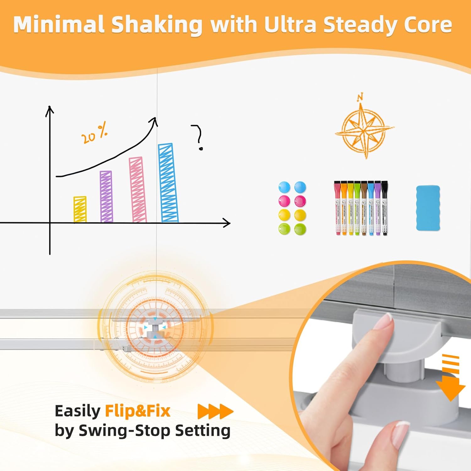 - Solid & Stable - Built with premium materials, rust protection, ABS corners, and a sturdy frame, this rolling white board is durable and secure. Four locking caster wheels ensure easy mobility and complete stability when writing or wiping