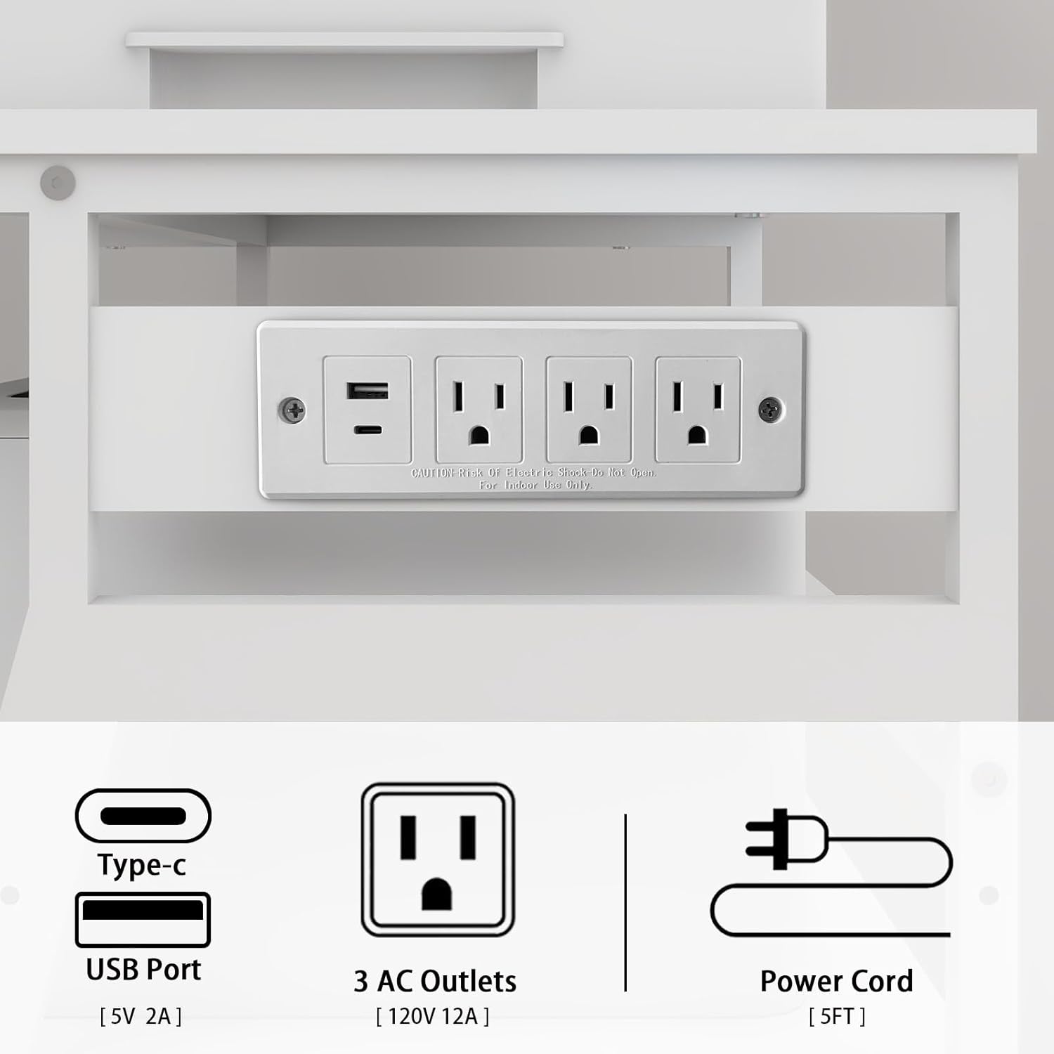 - 【Built-in Power Outlets】The printer table for home office is configured with charging station on the side panel. There are 3 AC outlets,1 Type-C and 1 USB Port that allows for simultaneous charging of the printer, computer host or shredder, and your laptop, phones. We provide 5ft length power cord for your flexible use of position.
