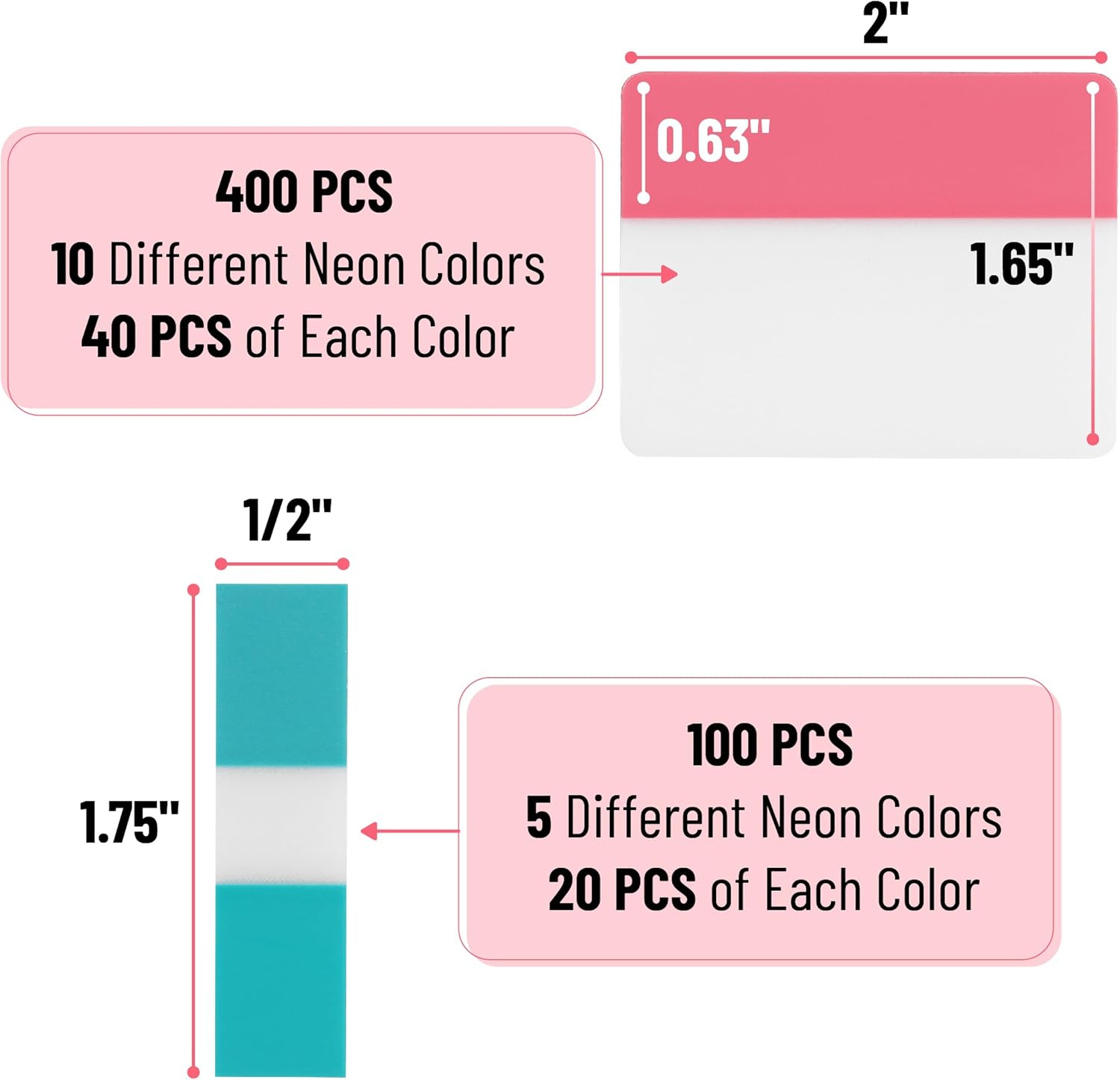 Mr. Pen- Sticky Index Tabs, 500 Pcs, 21 Sets, Colorful Sticky Tabs for Notebooks, Page Markers, Page Tabs for Binders, Page Tabs Sticky Tabs for Books, Notebook Tabs, Book Sticky Tabs for Notebooks