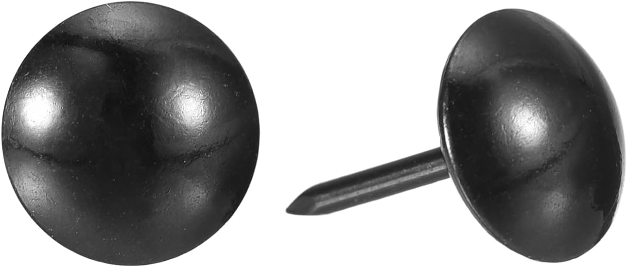 - Specifications: Material: Carbon steel; Color: Black; Diameter of nails head: 11mm/0.44inch; Shank length: 17mm/0.67inch; Package Content: 50Pcs x Upholstery Tacks Nail Pins