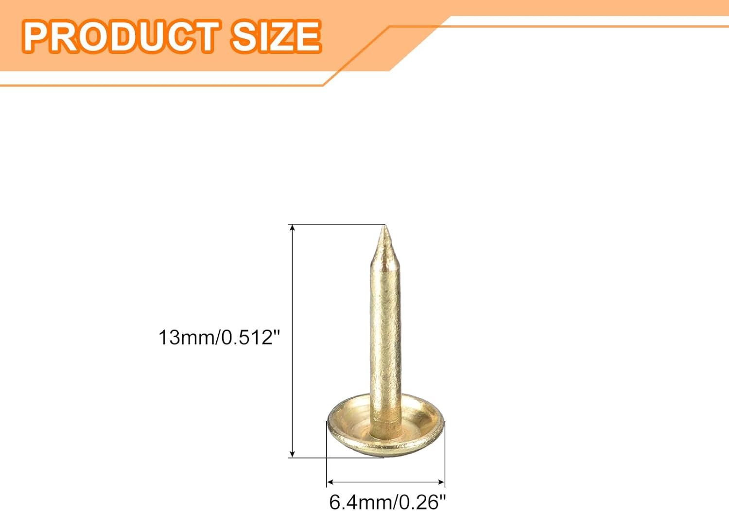 - Specifications: Material: Carbon steel; Color: Gold; Diameter of nails head: 6.4mm/0.26inch; Shank length: 13mm/0.512inch; Package Content: 100Pcs x Upholstery Tacks Nail Pins