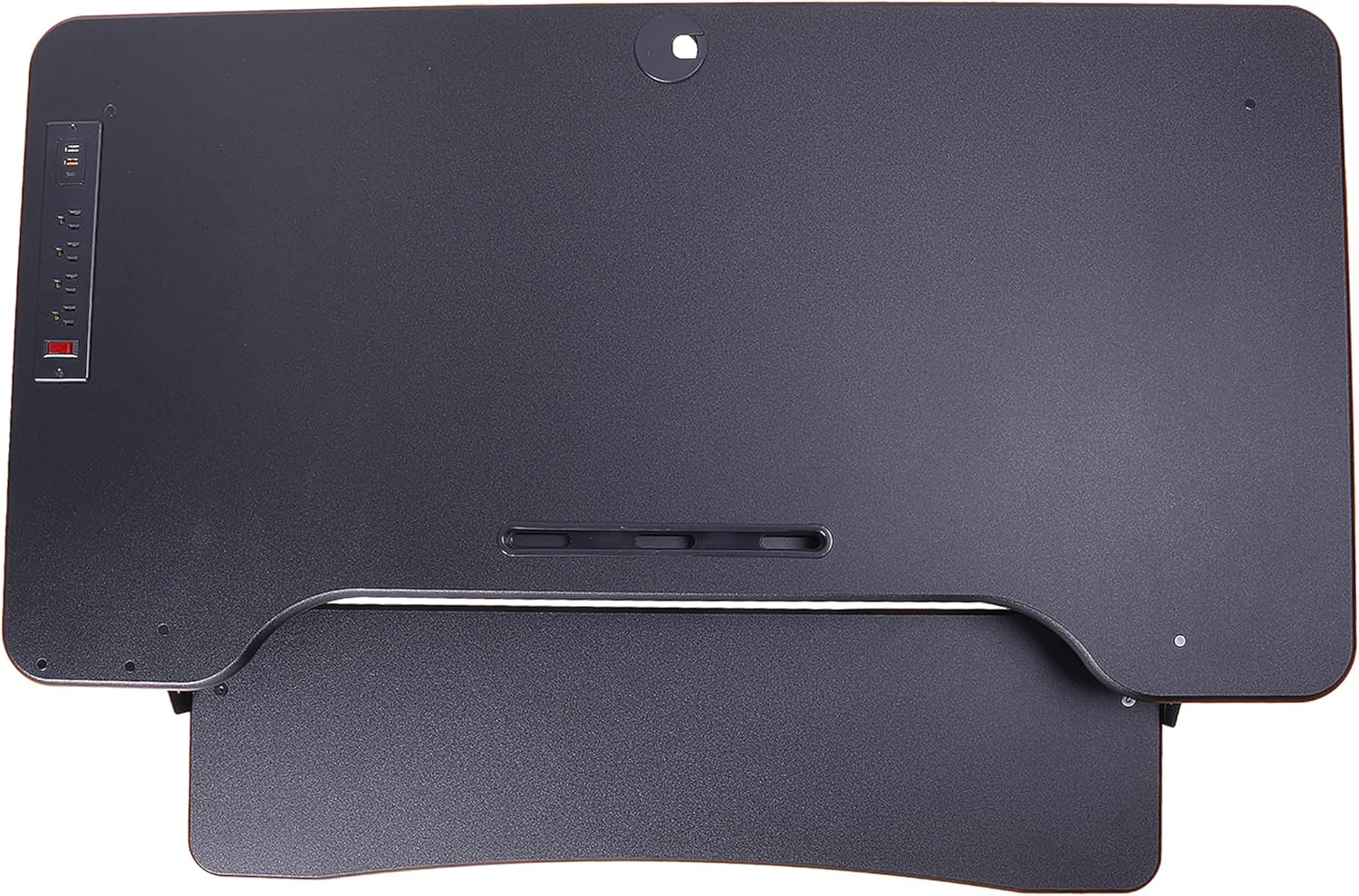 Rocelco 46" Electric Standing Desk Converter with AC Outlet USB Charger and Dual Monitor Arm Mount - Motorized Adjustable Sit Stand Riser - Tabletop Workstation Keyboard Tray - Black (R EDRB-46-DM2)