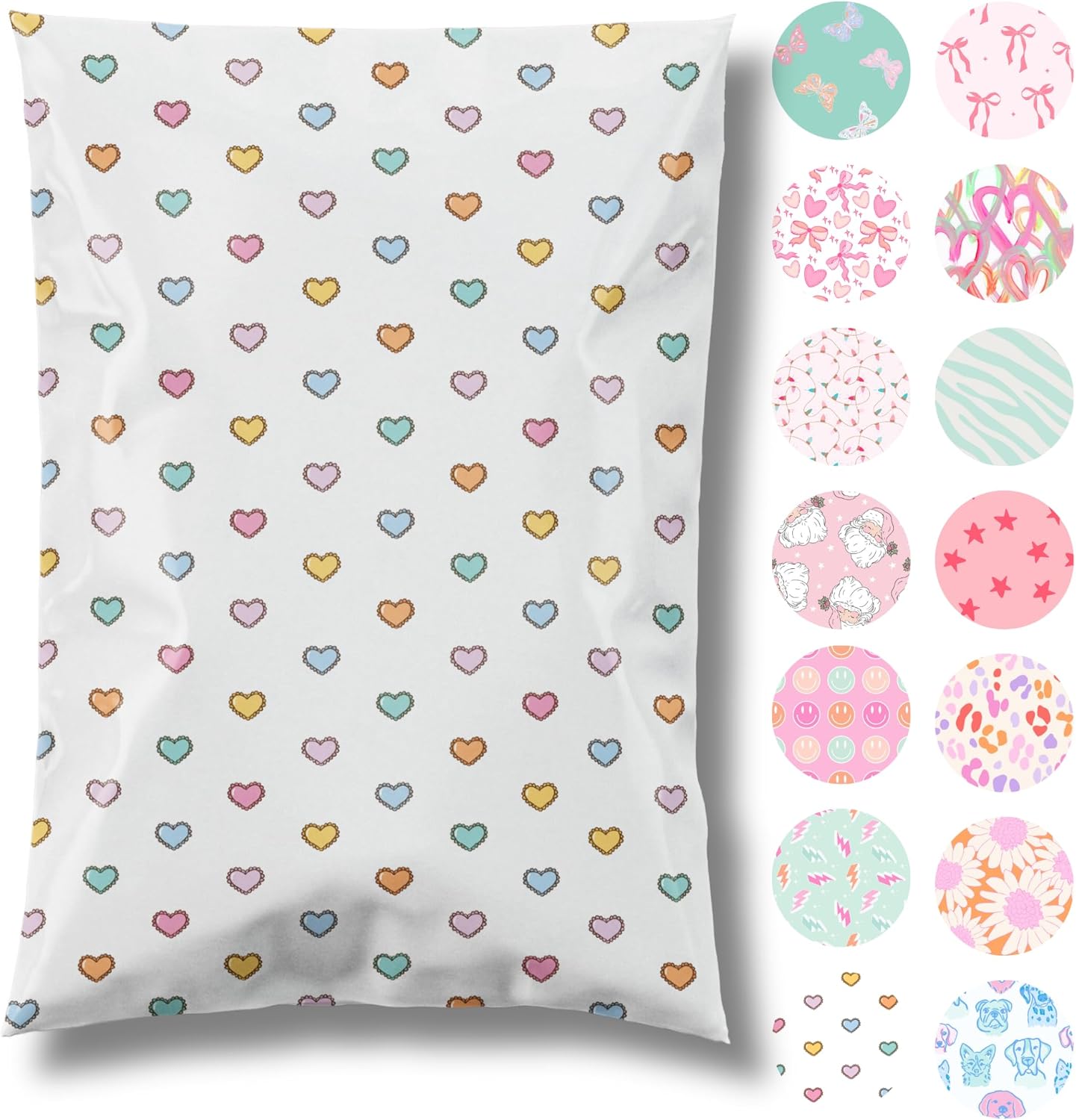 10x13 Designer Poly Mailer 100 Pack Heavy Duty Waterproof Self Seal Shipping Bags for Small Business Large Mailing Envelopes Bulk Tear Resistant Packaging Preppy Hearts