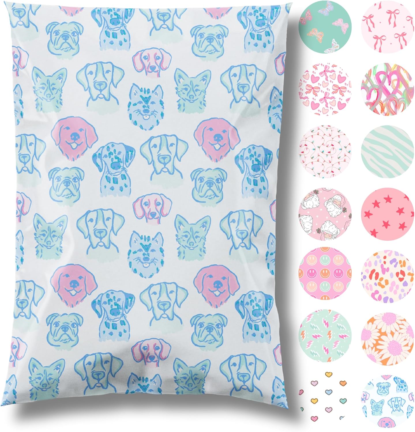 6x9 Designer Poly Mailer 100 Pack Heavy Duty Waterproof Self Seal Shipping Bags for Small Business Large Mailing Envelopes Bulk Tear Resistant Packaging Pretty Pups Puppy Dogs
