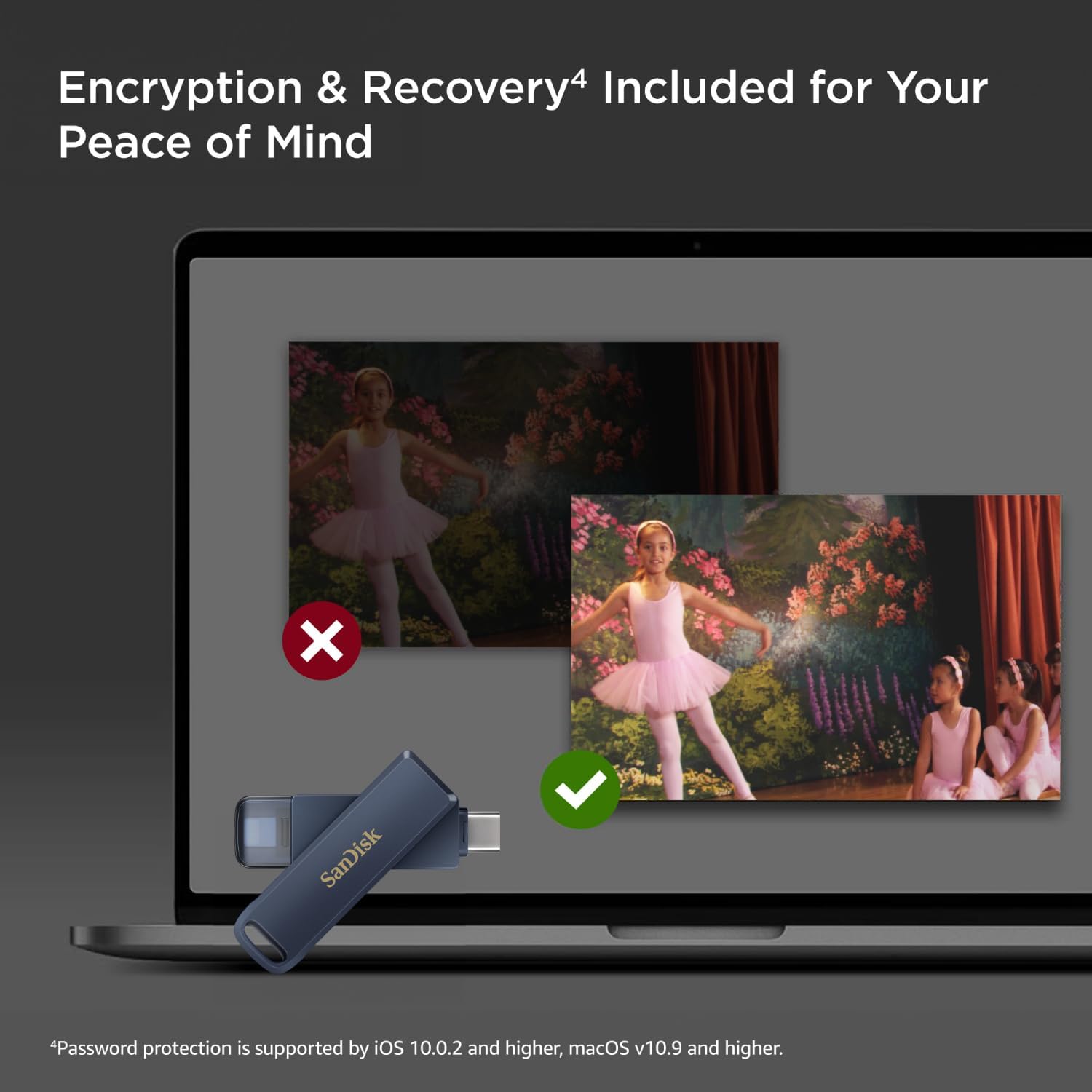 - COMPATIBLE with both iPhone 15 or newer (USB-C) and older iPhone models (Lightning). For iPhone, iPad, and Mac compatibility, see SanDisk site.