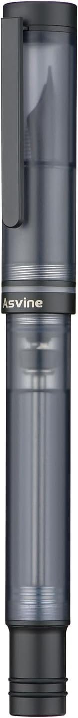 Asvine V200 Titanium Fountain Pen Vacuum Filling, Matte Black Medium Nib Clear Demonstrator Acrylic with Pen Case and Wrench