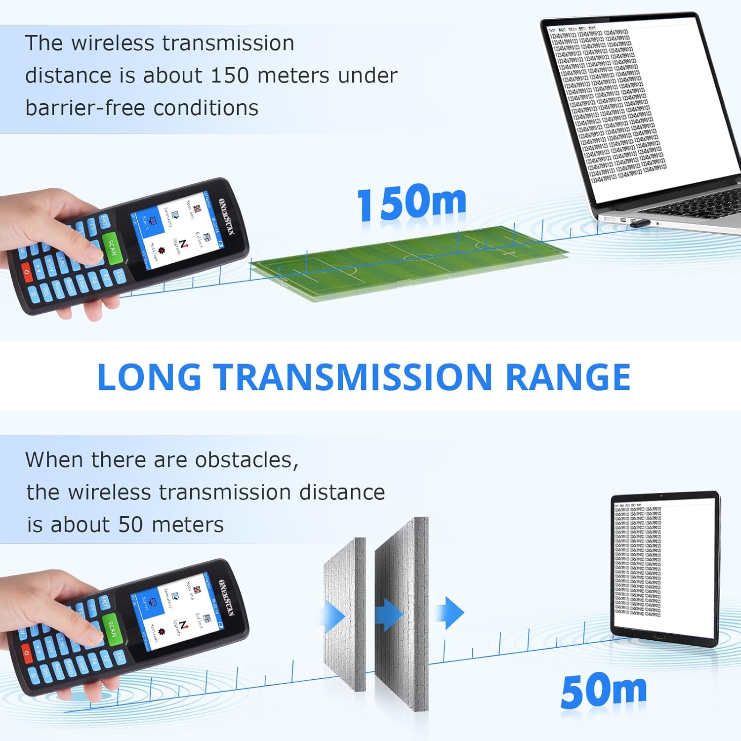 - 【3-in-1 Multifunction Inventory Barcode Scanner】- The wireless barcode scanner is a multi-functional inventory scanner that integrates a inventory barcode reader, data collector, and inventory counter. You can create 180 storage libraries and store 400,000 data. Our inventory barcode scanners are mainly used in warehouses, medical, cosmetics stores, supermarkets, banks, logistics, libraries, shops, etc