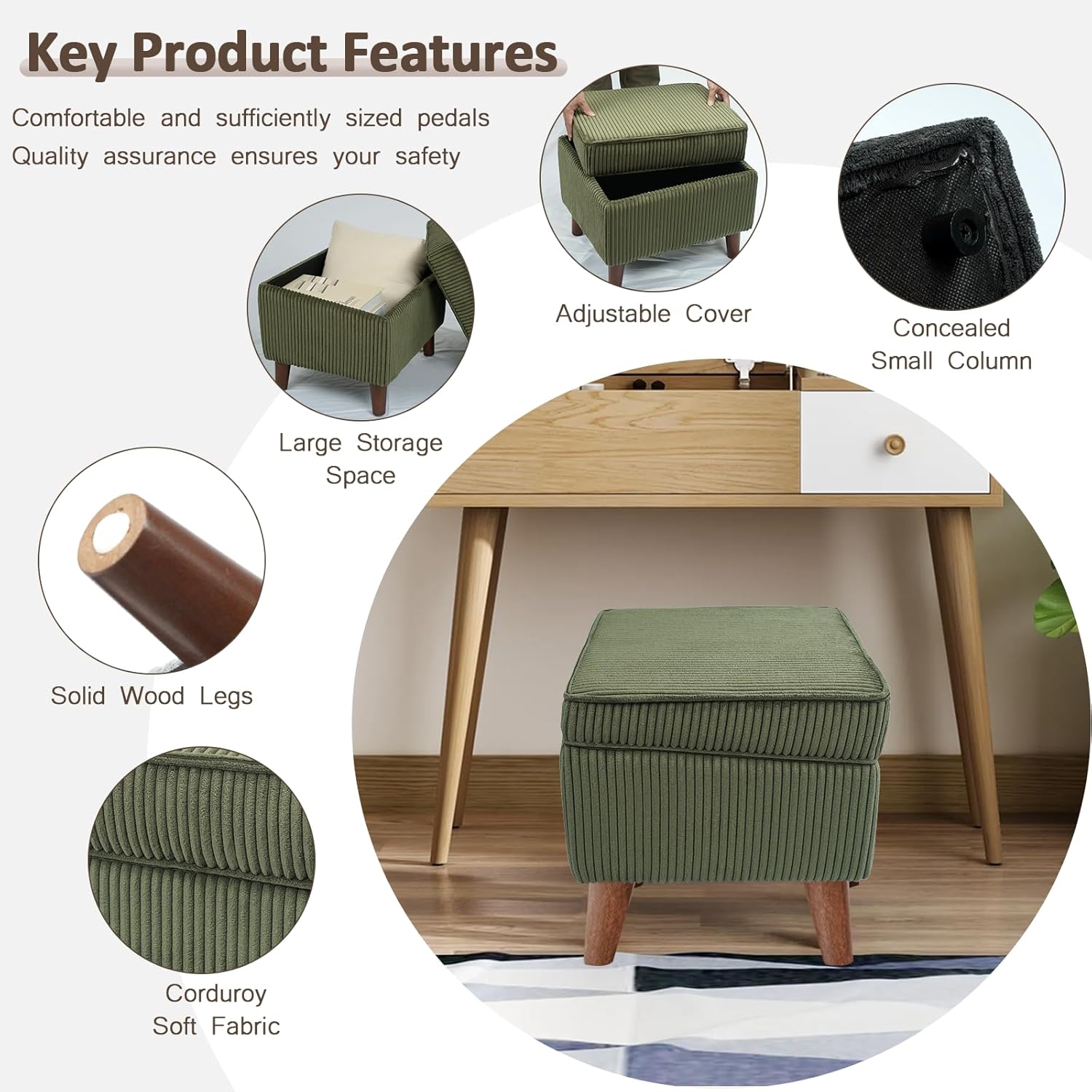 Storage Ottoman with Adjustable Lid, Soft Step Stool, Footrest and Seat, Ottoman Foot Rest for Living Room, Bedroom, Dorm, Green