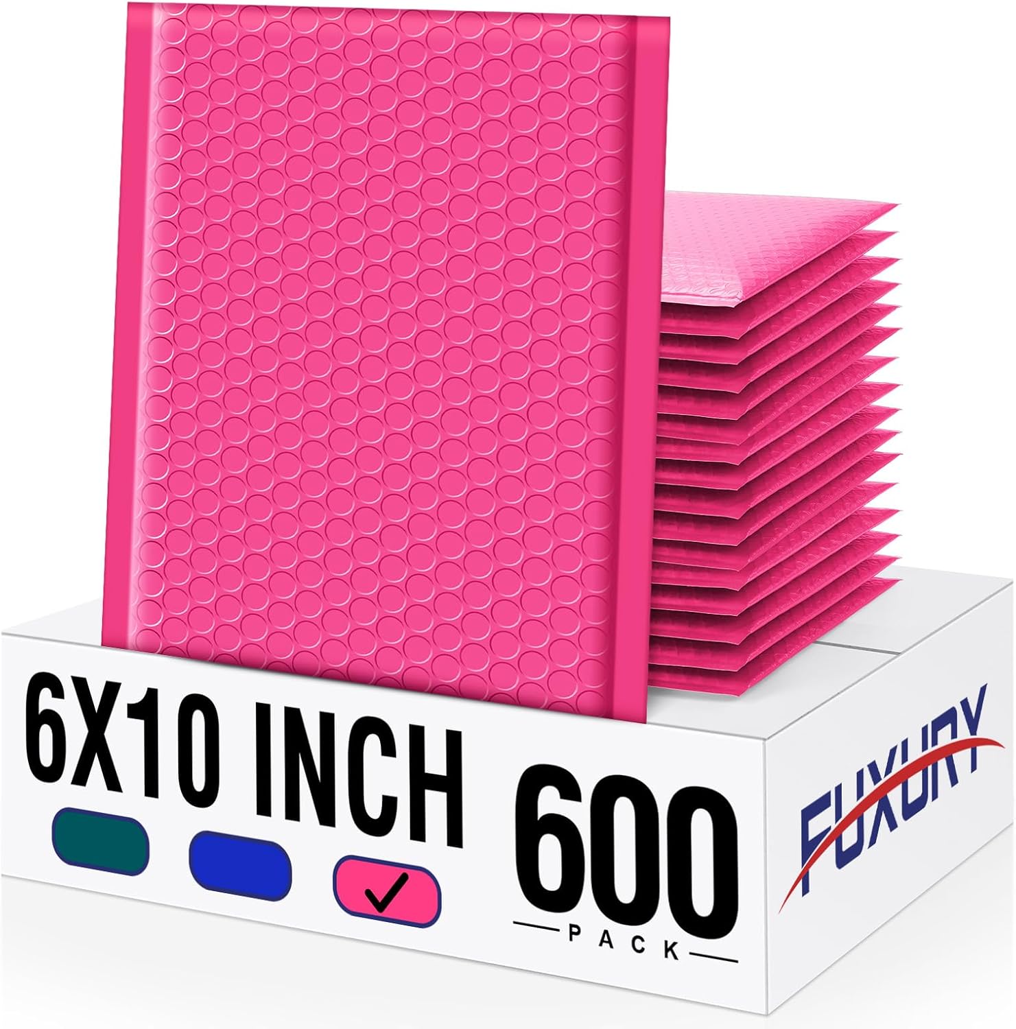 Fuxury Bubble Mailers 6x10" 600 Pack Pink Thick Padded Envelopes Usable Size 6x9" Mailing Envelopes Bubble Padded, Shipping Bags for Mailing,Packaging, Small Business, Boutique, Bulk #0