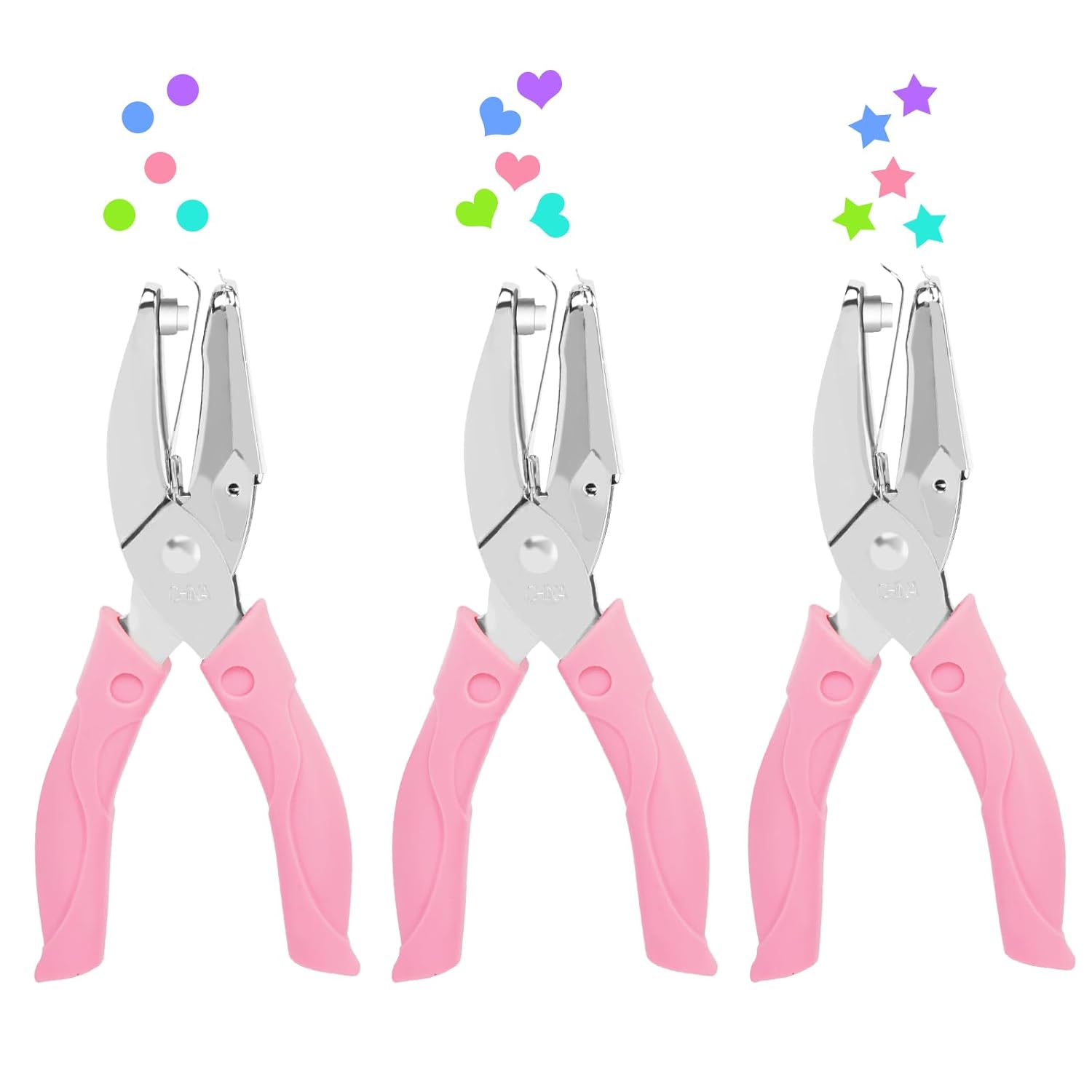UCEC 3 Pack Hole Punch Shapes, Single Hole Punch,Mini Hole Puncher with Soft Grip, 0.2 Inch Star, 0.22 Inch Heart Hole, 0.25 Inch Circle Punch for DIY Craft Tag Clothing Ticket Scrapbook Tool
