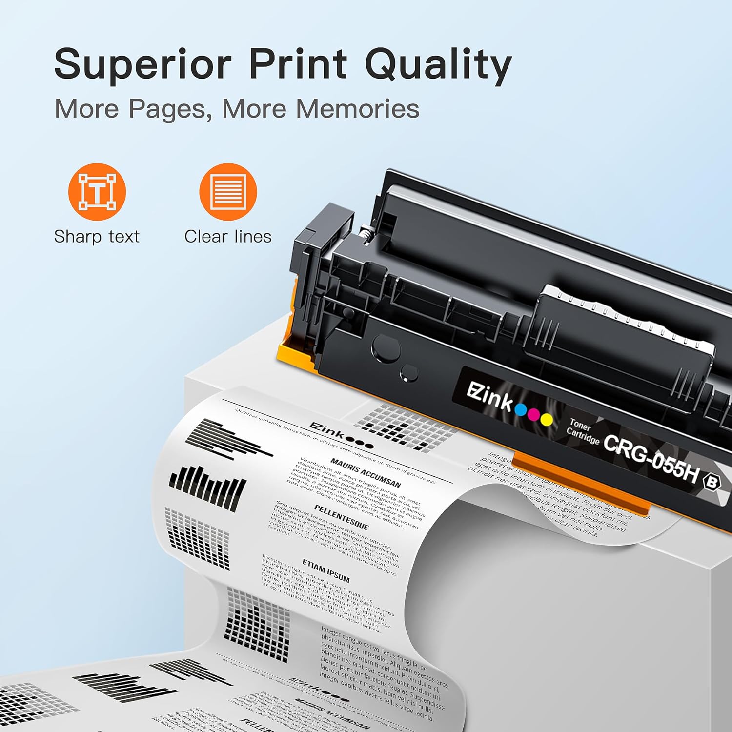 E-Z Ink Compatible Toner Cartridge Replacement for Canon 055 055H High Capacity Toner Cartridge for Canon Color ImageCLASS MF743Cdw MF741Cdw MF746Cdw MF743 Printer (Black Cyan Magenta Yellow, 4-Pack)