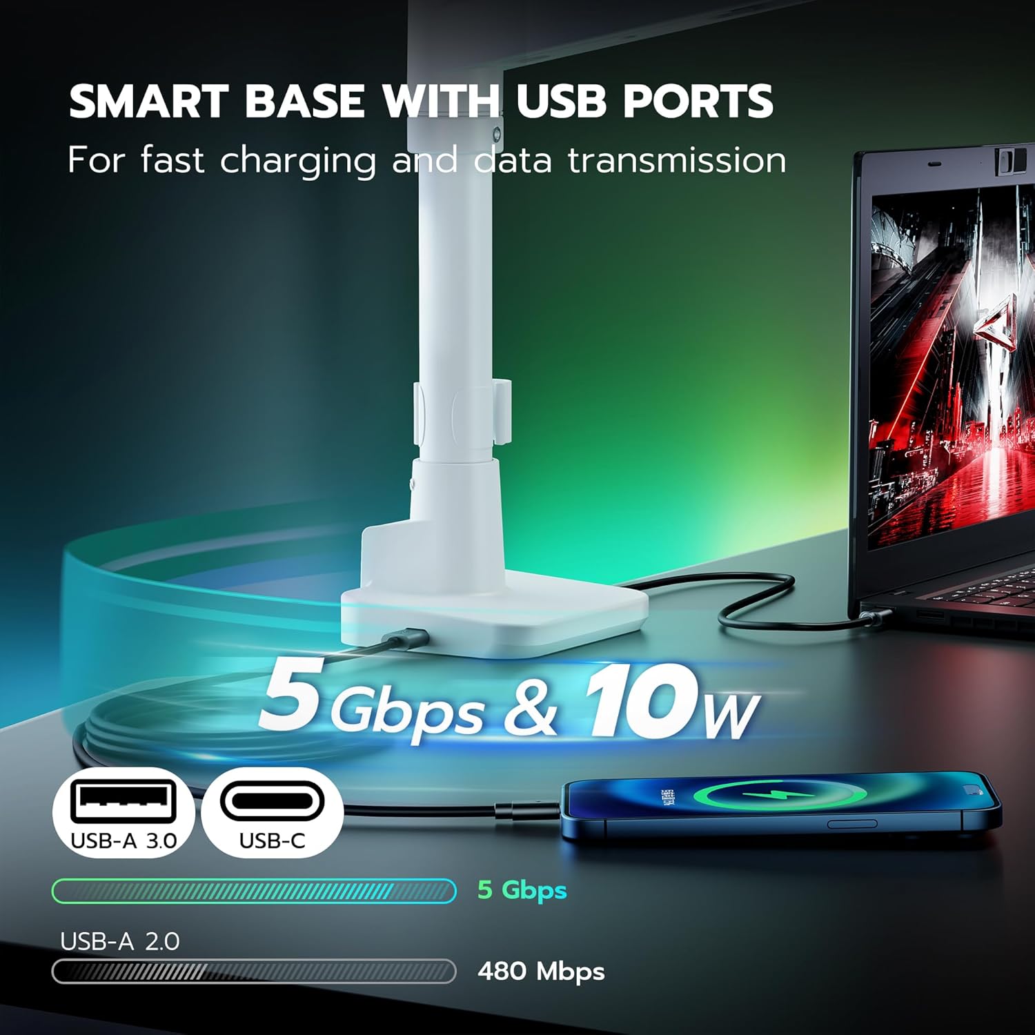 - Smart Base with USB-A/C Ports β Designed to declutter your workspace, this vesa monitor mount not only tackles cable chaos but also frees up over 80% of your desktop area. Equipped with integrated USB 3.0 ports, it offers seamless charging for your smartphones, gaming equipment, and convenient data transfer. By reclaiming valuable desk space, it creates room for your personal gadgets and dΓ©cor, enhancing both your productivity and workspace aesthetics.