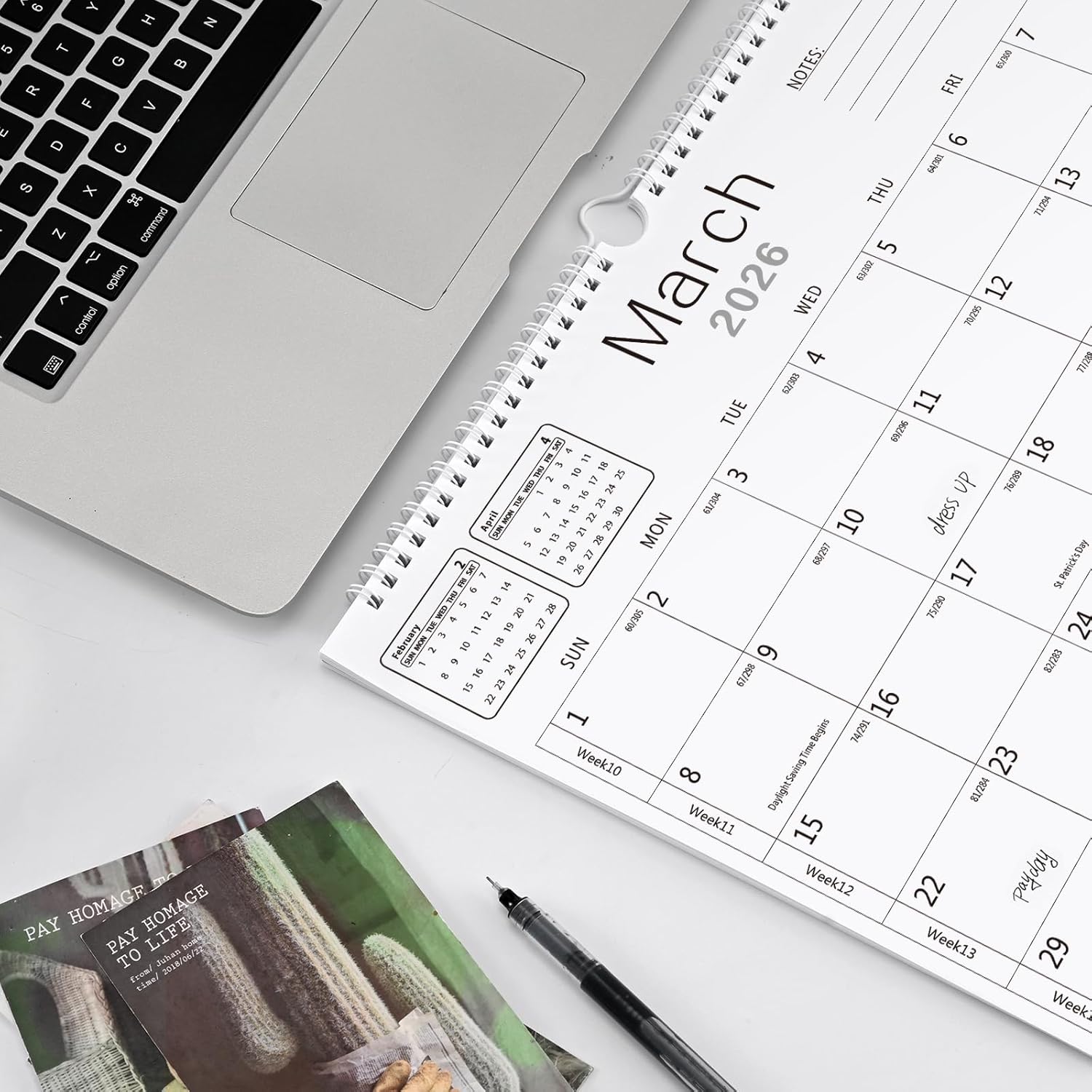 - 【18 Months Wall Calendar】:2026-2027 Wall Calendars from Jan. 2026-Jun. 2027,the calendar helps to track your daily tasks and long-term goals. calendar:12"×17". extra adding 6 monthly pages, Full year reference calendars are shown on each page for quick date checking and future planning, perfect to track your daily tasks, long-term goals & academic year planning.