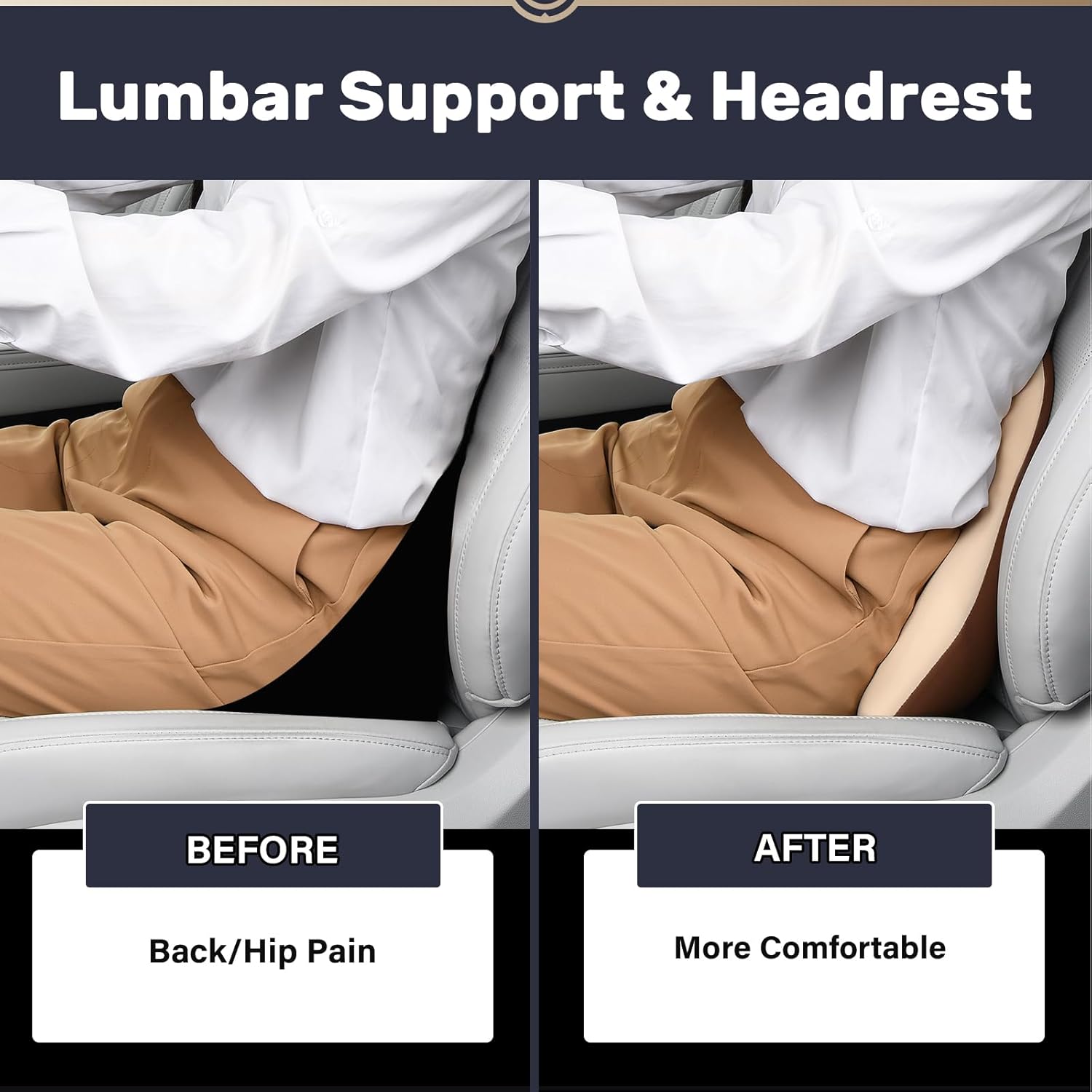 - Sitting Comfort & Relive Pressure: Our driver's headrest pillow and lumbar support pillow are made of high-density, slow-rebound memory sponges, ensures strong support. The car back support can absorb and relieve stress on your body. The headrest pillow can relieve your neck. Making it perfect for when you're in the car or taking a break at home