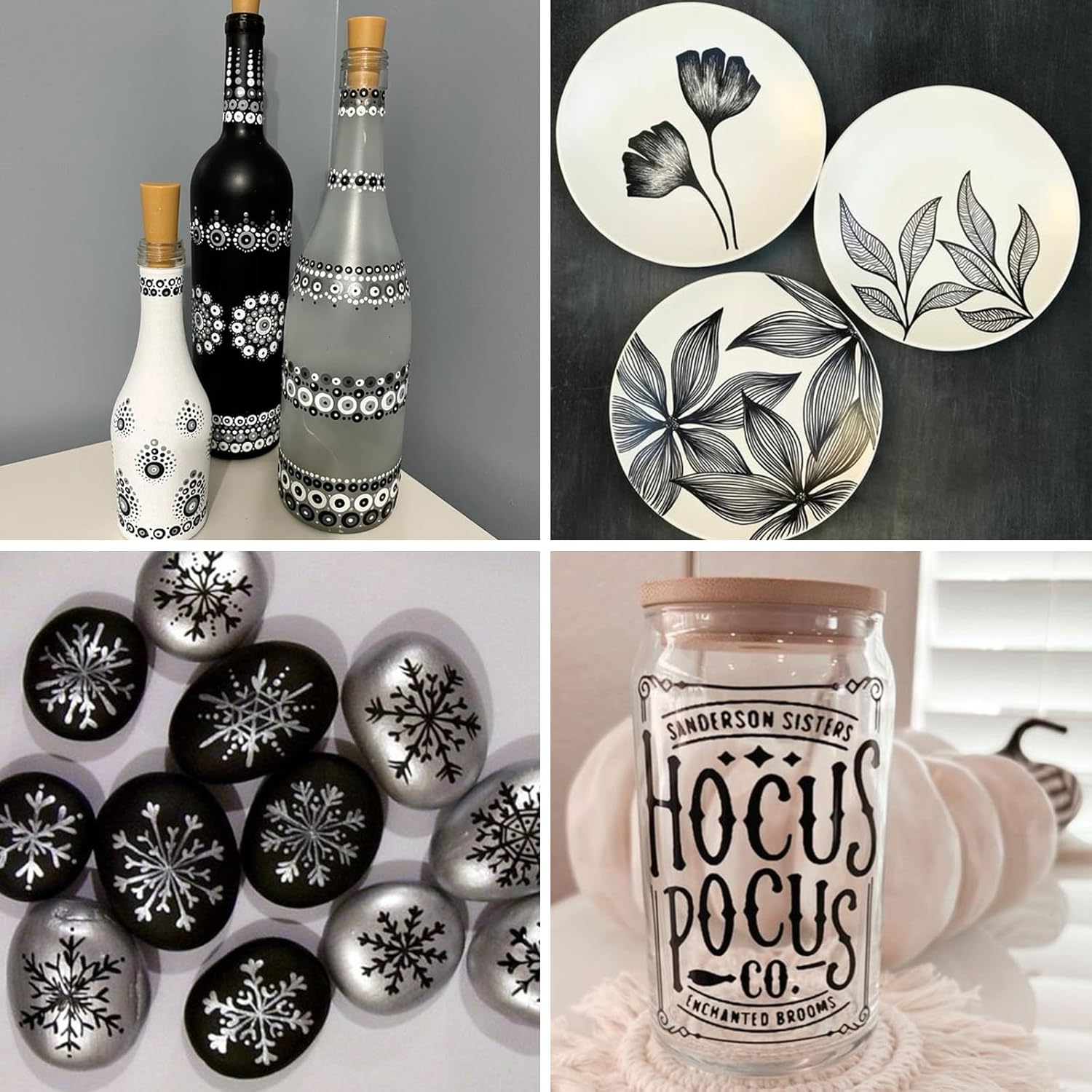 - VIBRANT ON ROCKS, WOOD & CRAFTS - A must-have for artists and DIYers. Creates stunning, permanent designs on rock painting, wood signs, canvas, and ceramic projects. The bold black is perfect for outlining, lettering, and adding defining details.
